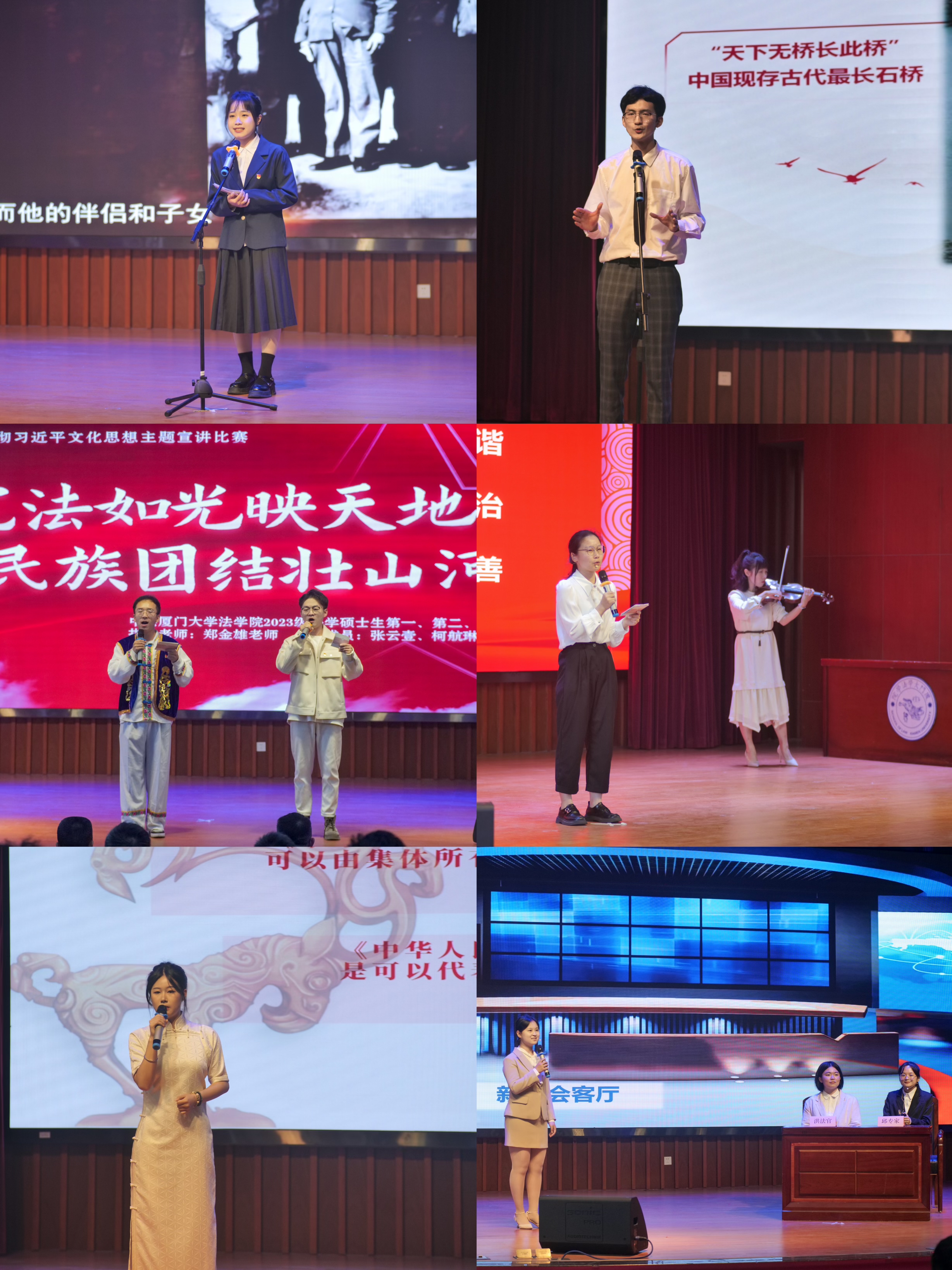 文化代代传承,思想与时俱进。习近平文化思想明体达用、体用贯通,标志着我们党对中国特色社会主义文化建设规律的认识达到了新高度,表明我们党的历史自信、文化自信达到了新高度,在党的宣传思想文化事业发展史上具有里程碑意义。活动中,来自各学生党支部的参赛队伍立足专业学科特色,采取主题演讲、案例分析、故事讲述、新闻报道等多种形式讲述司法案例,以“小切口”讲“大道理”,呈现出了精彩而丰富多元的宣讲效果。他们通过对唐山烧烤店打人案、彭宇案、海外文物追索案等经典案例的陈述、分析和解读,深入挖掘阐释其中所蕴含的习近平文化思想,并将中华优秀传统文化与新时代法治建设有机结合,展现社会主义核心价值观,弘扬宪法精神,传播时代强音。