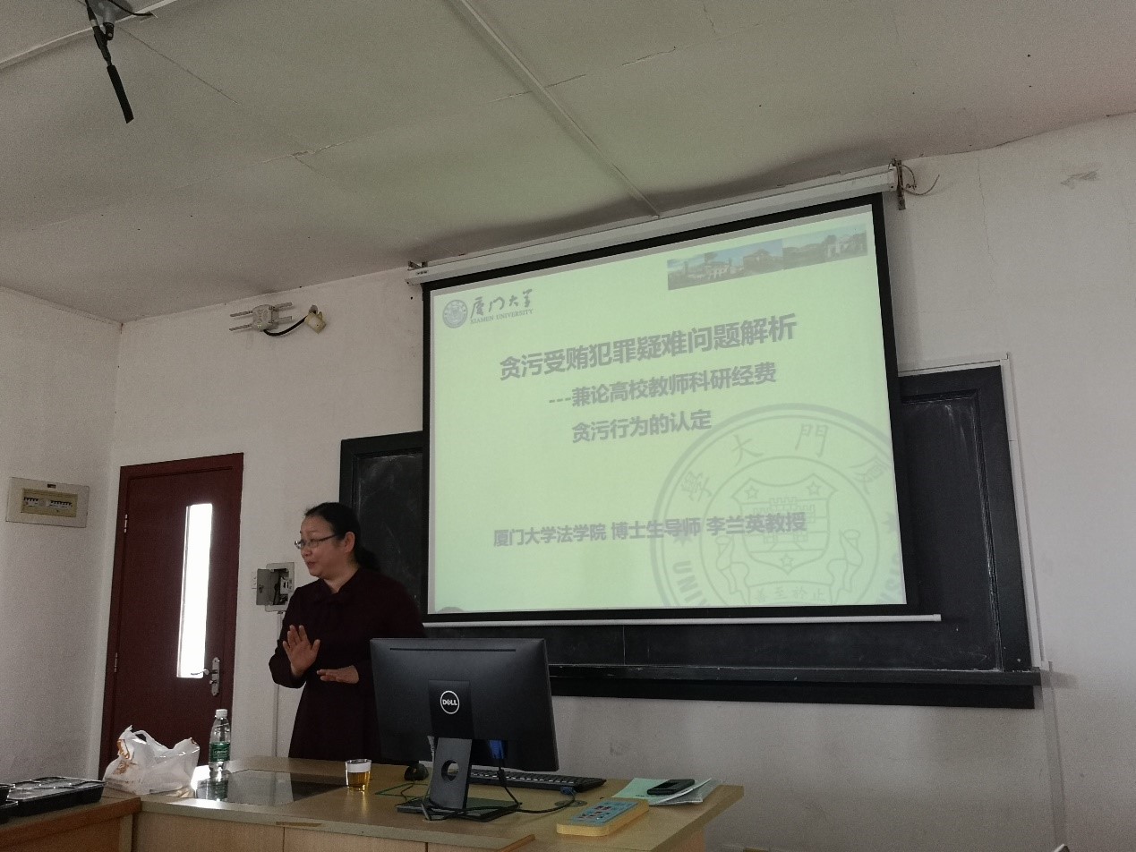 2019年12月16日,由厦门大学法学院青年教职工协会主办的信实学术午餐会(第十七期)在法学院B栋520教室顺利举行。本次午餐会由刘玉姿助理教授主持,主讲人为李兰英教授,报告主题为“关于贪污受贿罪疑难问题解析——兼论高校科研经费的贪污行为的认定”。近三十位法学院青年教职工和福建信实律师事务所的律师参加了本次学术午餐会。