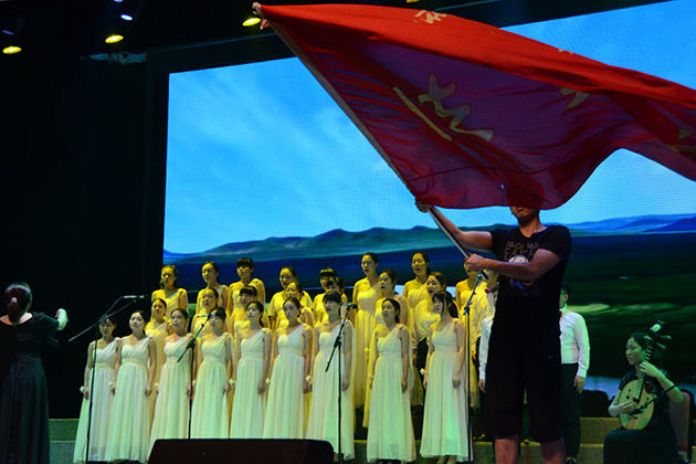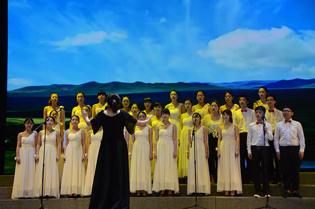 伴着悠扬的钢琴曲与洋洋盈耳的阮声,合唱队队员们齐展歌喉,徐徐唱响的歌声仿佛使人置身于辽阔的草原,充盈眼前的,是一大片无垠的绿野。
