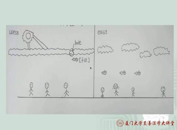 在比较东西方法区别时,王教授借助一张漫画进行了形象的说明(如上所示),太阳代表法律的最高价值,云层则代表法。在西方,法的呈现以一种无缝对接的法的体系性为特征,法律的具体规则体系必须没有漏洞,完整覆盖,事事有法可依,例如《法国民法典》正是其完美体现。但实践中往往出现悖论,即法律实际上存在漏洞,例如:随着社会发展,新的问题层出不穷;具体案件具有特殊性;法律之间还会存在矛盾;形式主义适用会造成不公平。而通过法律解释进行填补,这是西方式的典型。而在东方,天空云彩与西方表现出不一样的状态,云层不是密不透风的,太阳可以通过云层过滤或不通过云层照耀到地上万物。在东方人看来,法律不可能穷尽一切,法律条款数量有限,而客观发生的情况没有穷尽,不可能预先知晓或研判。总而言之,西方法是规则型的法,通过适用规则的形式获得执行。而东方法虽然有制定法,但是不周延,其权威性较低。王教授对于规则与非规则的概念进行了辨析,法的目的是实现“公”,即大家都能接受的至正至公,这便是法需实现的目的。王教授提到公论的理念与产生,并对寺田浩明等学者的分析进行了阐述。