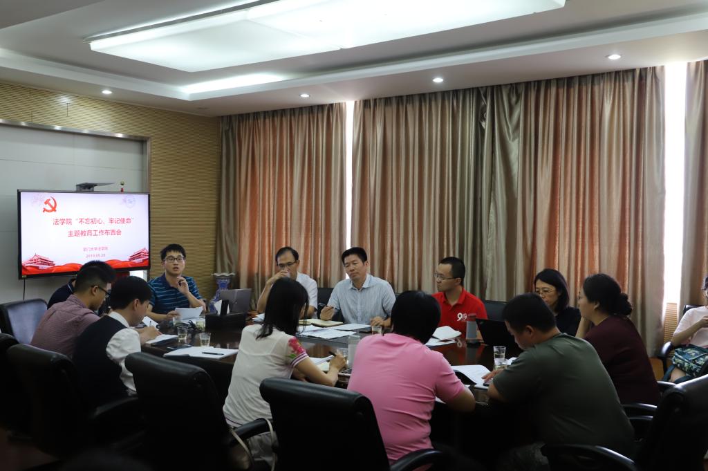 9月28日下午3点,法学院党委于C601会议室组织召开了“不忘初心、牢记使命”主题教育学院工作部署会议暨支部工作调研会。学院党委书记许和山、党委副书记郭锦星、党务秘书林旭荣,以及学院全体师生党支部书记与干部代表参加了本次会议。