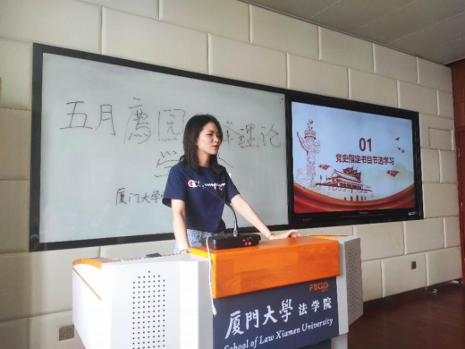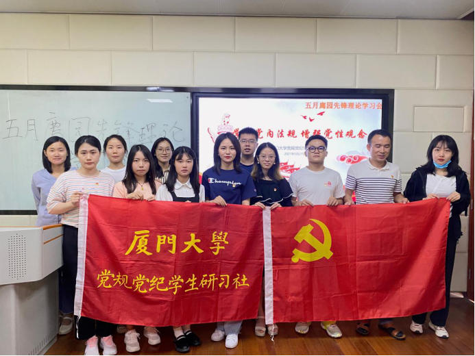 为更好地开展党史学习教育,夯实基层党建根基,强化“尊崇党章、认知党史”的学习理念,5月27日下午,厦门大学党规党纪学生研习社于法学院B522多媒体教室举行5月廌园先锋理论学习会。