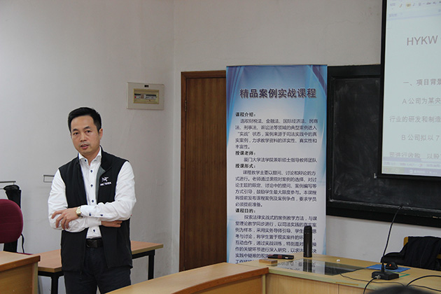 2016年3月31日,由厦门大学法学院主办、大学生法律援助中心承办的《精品案例实战课程》第三讲在法学院B520成功举办,厦门大学法学院刘学敏老师主持了本次课程,法学院共有20名学生通过报名方式参与了本次课程。