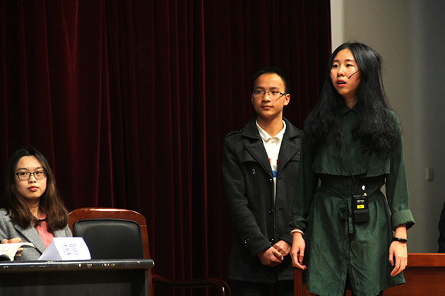 (法学院吴旭莉老师对前三组表演进行点评)