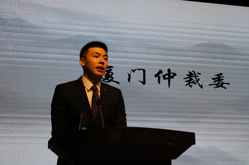 决赛伊始,厦门大学法学院郭锦星副书记和厦门市仲裁委林丰先生相继致辞。
