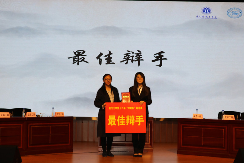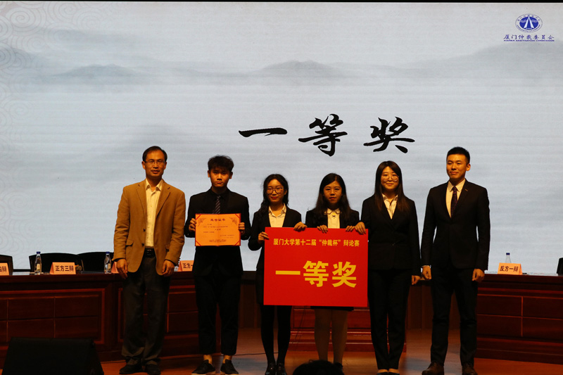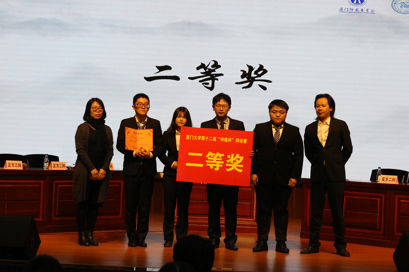 最终,经过赛事评审委员们的认真点评,主席隆重宣布获得本届“厦门仲裁”杯大学生辩论赛决赛获胜的队伍是正方厦门大学代表队,正方四辩周晓宇同学获得决赛“最佳辩手”。获奖的辩手们起身致谢,全场观众也给他们予热烈的掌声。