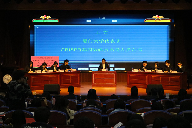 简短的开场介绍后,正方厦门大学代表队以“CRISPR基因编辑技术代表的是当今科技发展的前进方向,我们不应当局限于当下的视野,此项科技的发展必将带给我们更多利益”的观点为立论,散出了辩场对决的硝烟。而反方福州大学代表队则强调了CRISPR基因编辑技术对人权、伦理和社会秩序的负面影响,与之展开了激烈的华山论剑。