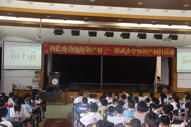 在“世界知识产权日”到来之际,为更好地宣传知识产权法律法规,增强小学生知识产权保护意识,4月27日下午,法学院与演武小学于模拟法庭联合举办“我们身边的知识产权——演武小学知识产权日活动”。活动邀请到厦门大学知识产权研究院博士生黄钱欣作为主讲人,法学院党委副书记周蕾、辅导员杨璐、演武小学教务办吴海燕主任及四年级一百五十余名小学生参加了活动,2014级本科2班的同学们也为活动的前期筹备和现场服务付出了巨大努力。