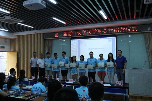 经过五天的思维碰撞、学术探讨,首届厦门大学法学夏令营闭营仪式于19日上午在B137教室举行,本次闭营仪式由党委副书记周蕾主持,出席的嘉宾有:党委书记李智勇,党委副书记郭锦星,副院长朱炎生,团委书记高斌,团委副书记林旭荣,研究生辅导员宋磊华。全体夏令营学员、志愿者出席本次闭营仪式。