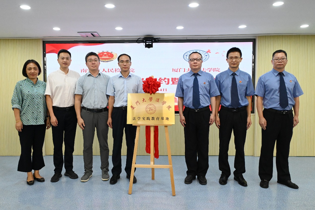 法学院副院长王杏飞与南安市检察院党组书记、检察长胡激洋共同为“厦门大学法学院法学实践教育基地”揭牌。