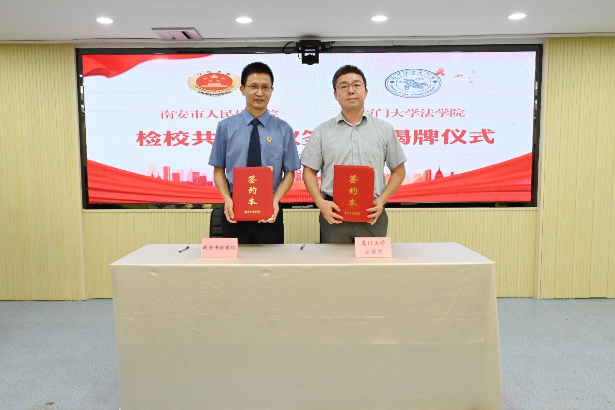 仪式上,法学院副院长郑永宽和南安市检察院党组成员、副检察长吴联炮共同签订《南安市人民检察院 厦门大学法学院检校共建协议书》。