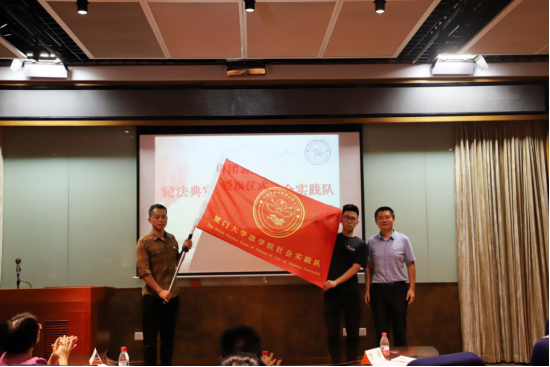 曾铮、许和山为民法典宣讲团暑期社会实践队授旗。