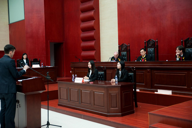 参加本届比赛的厦门大学代表队由我院14级国际法硕士生蓝维婕、13级本科生李白翎以及15级国际法硕士生王晶晶组成,在教练张膑心老师的悉心指导下,经过两个多月的刻苦准备和反复演练,最终闯进三四名决赛。其中,往届队员和其他国际法辩队的队员也给予了很大的支持和帮助。