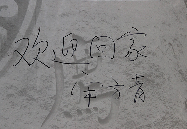 法学院院长宋方青在展板上留下“欢迎回家”四个大字,引来一片掌声。