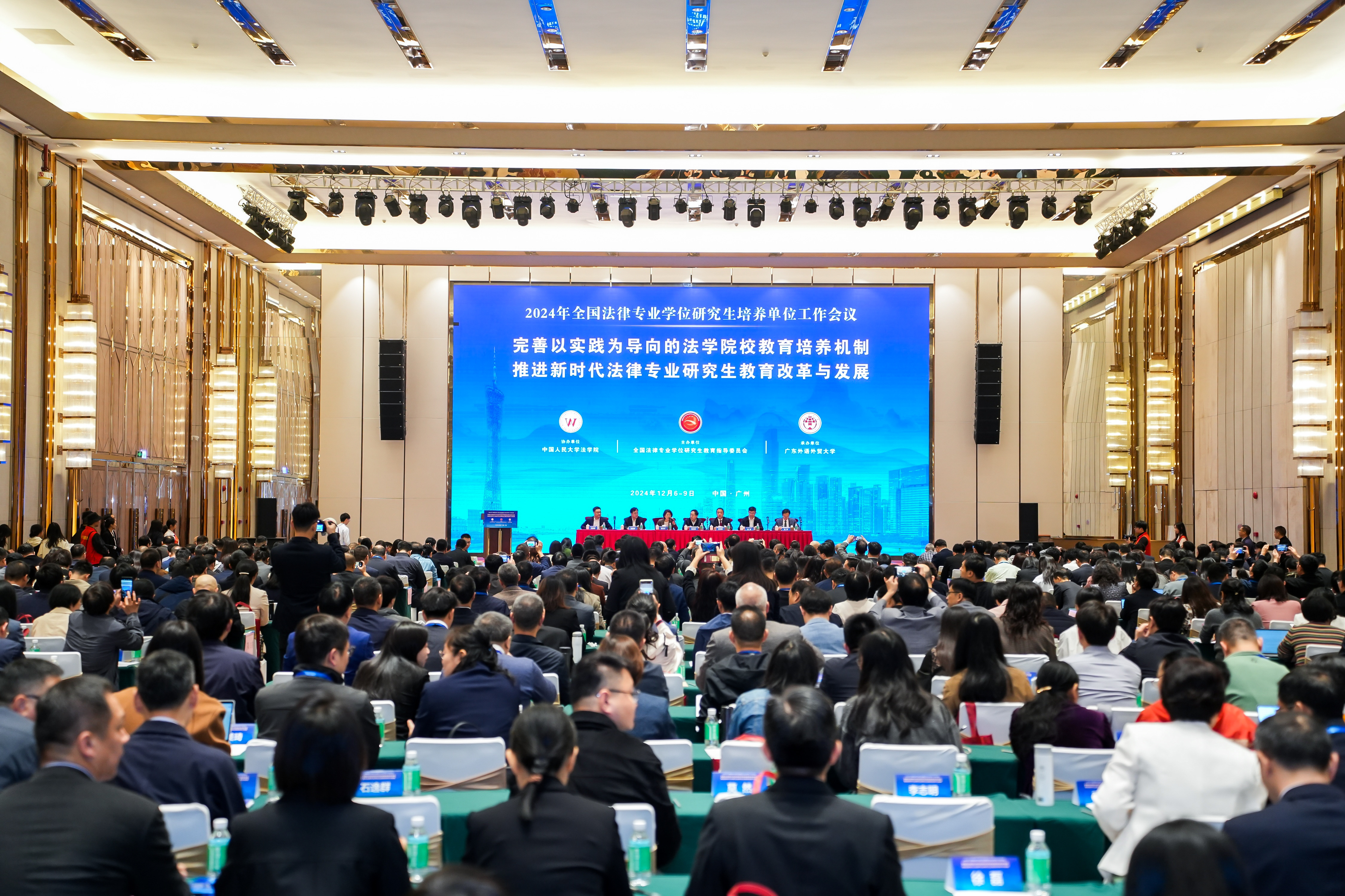2024年全国法律专业学位研究生培养单位工作会议12月7日至8日在广州举行。本次会议的主题为“完善以实践为导向的法学院校教育培养机制,推进新时代法律专业研究生教育改革与发展”,旨在深入贯彻落实党的二十届三中全会精神,全面学习贯彻习近平法治思想,深入学习贯彻习近平总书记在全国教育大会上的重要讲话精神,完善以实践为导向的法学院校教育培养机制,大力提升法律专业学位研究生教育教学水平。司法部、教育部、中国法学会、广东省司法厅、广东省教育厅等部门,以及全国260余所高校500多名代表参加会议。