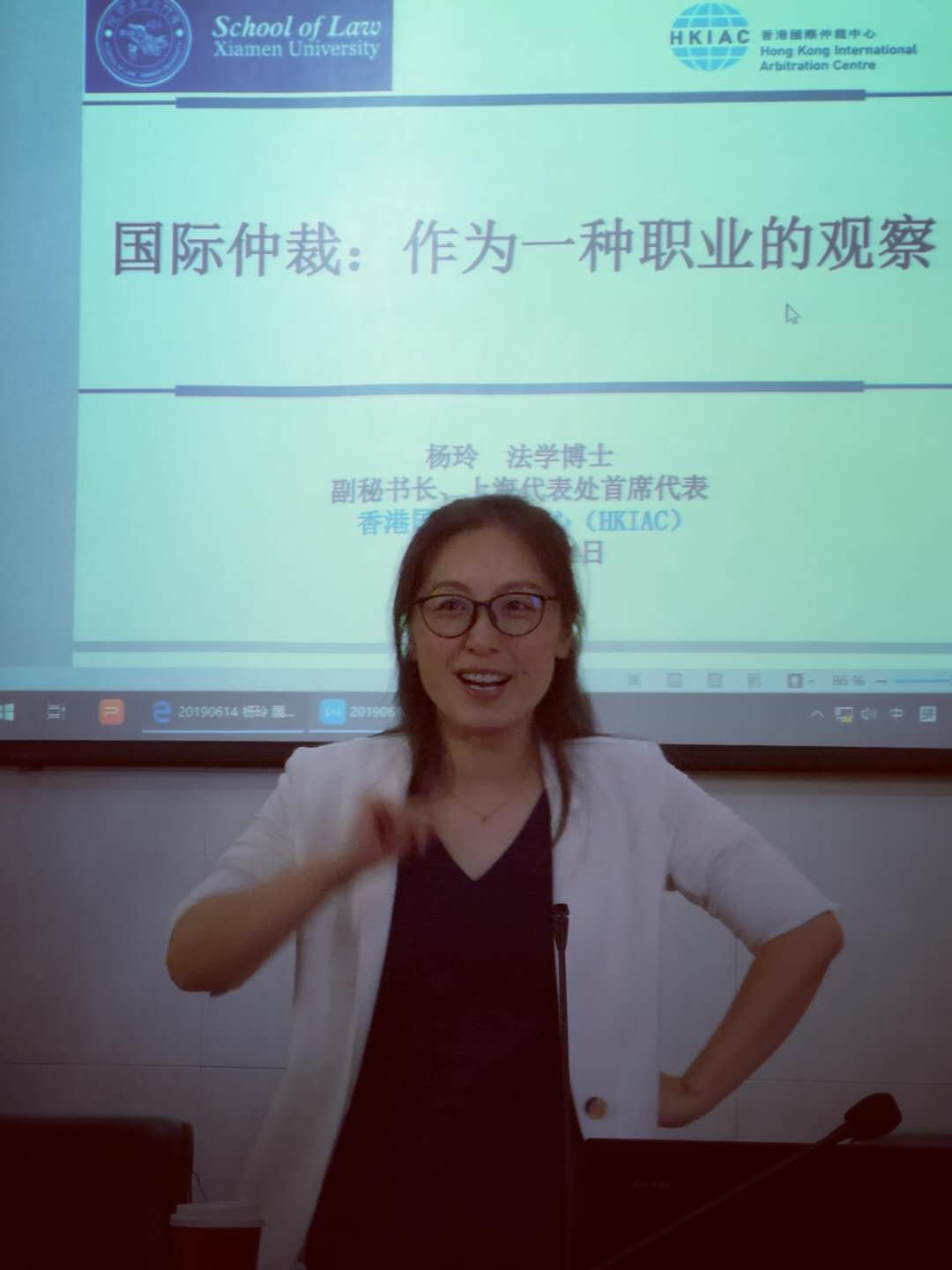 6月14日下午,香港国际仲裁中心副秘书长兼上海代表处首席代表杨玲博士以“国际仲裁:作为一种职业的观察”为题做了精彩报告。杨玲博士概述了国际仲裁的参与现状,接着选择三位具有代表性的国际仲裁员,通过分析他们参与国际仲裁的路径,鼓励在座的国际法硕、博学生把国际仲裁纳入职业规划的考量。杨玲博士在分析中国参与国际仲裁的形势时指出,中国真正能参与到国际仲裁案件的从业人员仍然短缺,远远没有达到可以在学者与仲裁员之间自由切换的“旋转门”状态,她建议可以通过关注Global Arbitration News的最新资讯、保持思考和写作、参与培训等方式为未来从事国际仲裁行业打下基础。讲座由于飞教授主持,于湛旻助理教授评议。龚宇副教授、北京观韬中茂(厦门)律师事务所执行合伙人安寿志律师以及二十余位国际法博士生和硕士生参加了讲座。