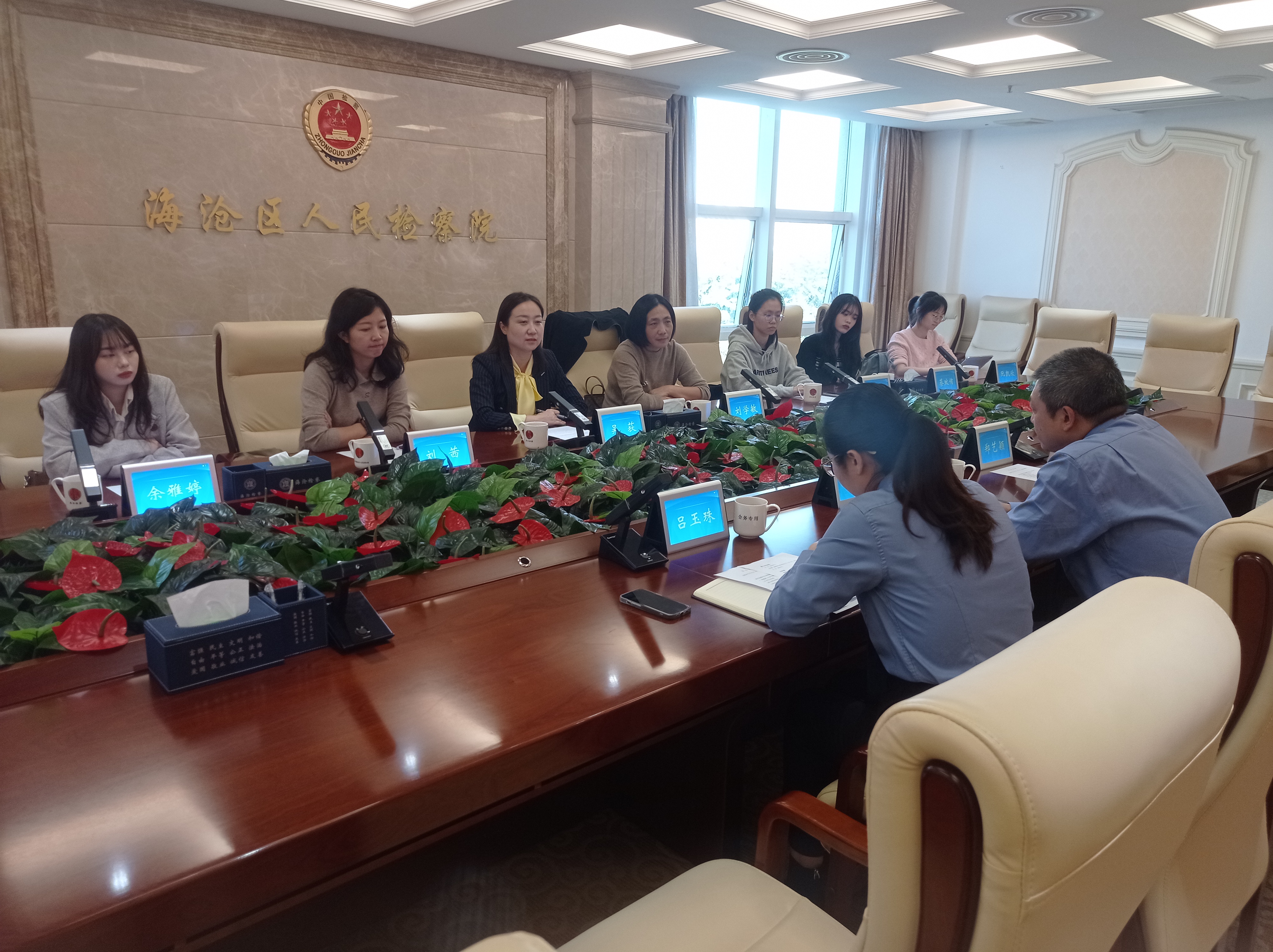 吴荻表示,海沧区检察院作为大陆首家设置涉台检察室的检察院,承担着保障台企台胞权益、开展对台司法交流等重要工作,感谢海沧区检察为台湾学子提供实习机会,希望同学们珍惜机会,学以致用,提升能力,同时希望以本次实习实训为契机,进一步发挥厦门大学在推进海峡两岸融合发展中的作用。刘学敏介绍了海峡两岸检察制度研究中心开展的相关工作,希望未来与海沧区人民检察院加强合作,促进两岸司法合作发展。陈宇介绍了海沧区检察院的职能、定位等基本情况,表示将全力做好学生实习工作安排与保障,也将积极探索更加多元的实习实训模式,助力学生成长成才。郑艺颖对实习实训作了岗前培训,强调要提高保密意识,遵守保密要求。