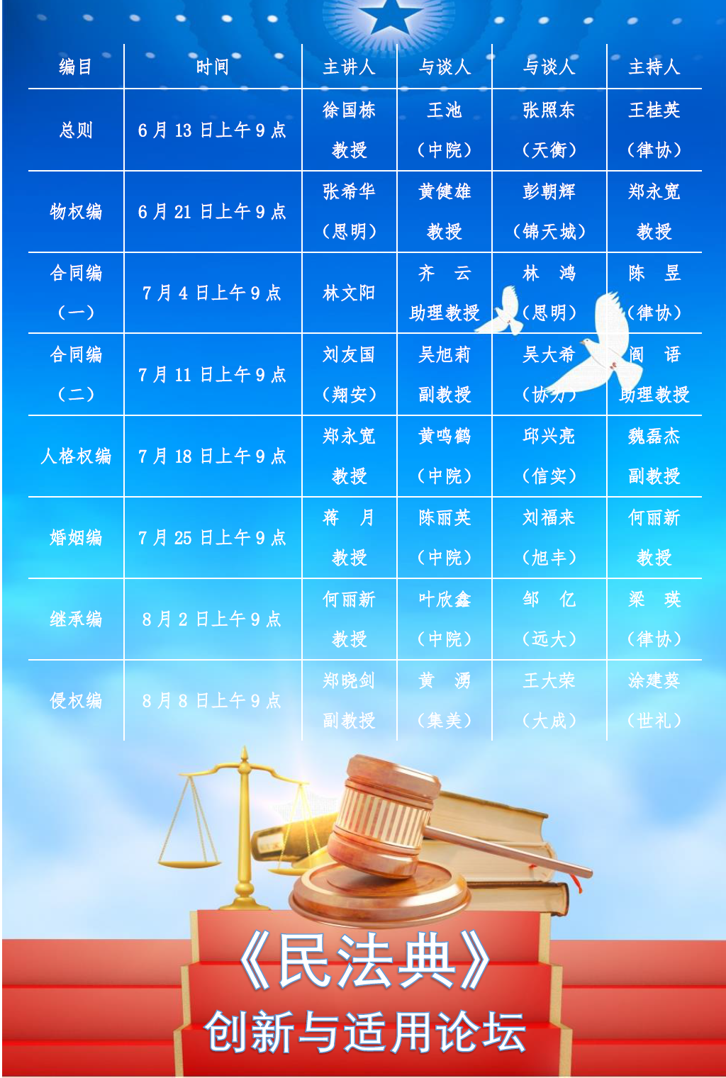 厦门大学法学院期待在此次系列论坛的举办中,与每一个热切关注着《民法典》动态的法律从业者共同学习和进步,共同为民法典的普及、民事法治的推动和完善贡献自己的力量!