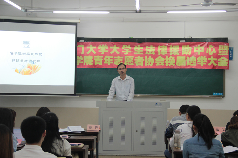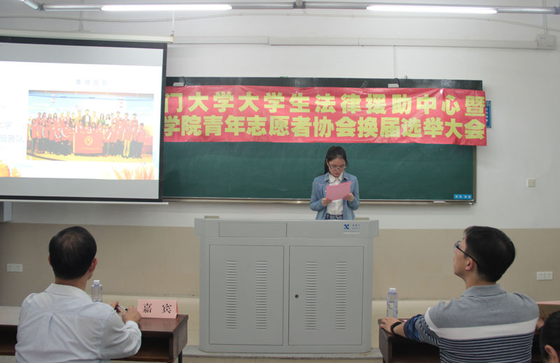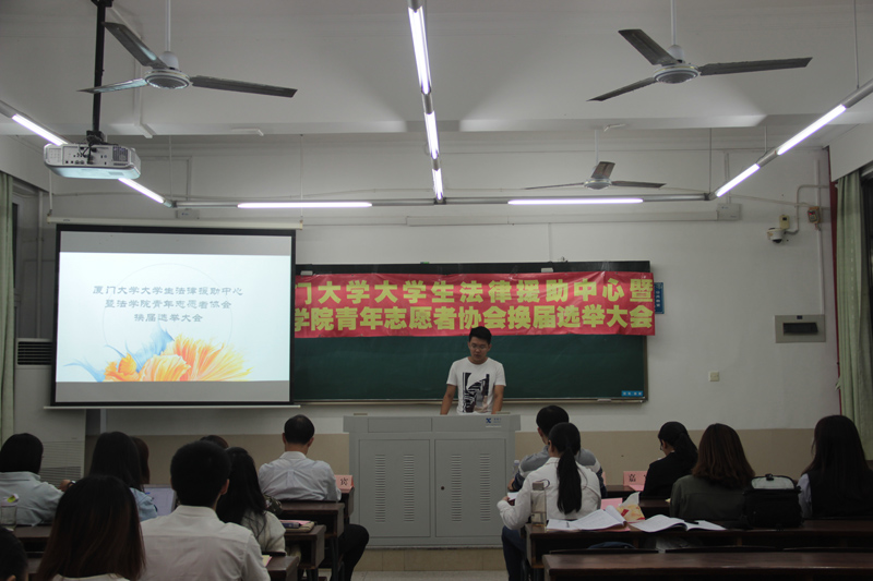 2017年10月24日晚7点,第十七届厦门大学大学生法律援助中心暨学院青年志愿者协会换届大会于法学院A201教室隆重举行,由第十六届厦门大学大学生法律援助中心副主任、法学院硕士丁大伟同学主持召开。