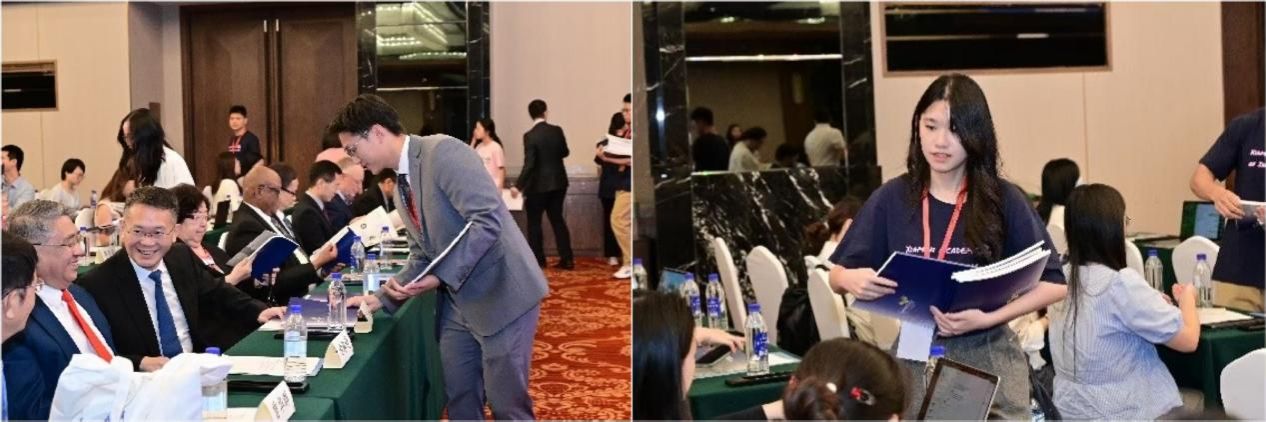 在研究院汇报环节,研究院行政理事会联席秘书长、厦门大学法学院助理教授于湛旻博士详细介绍了本届研修班的课程设置和教学安排。研究院联席院长、厦门大学法学院曾华群教授通过翔实的数据和生动的事例,全面展示了研究院二十年来的发展成就,并就研究院的初心使命、优秀传统和坚强支柱作了简要评论。随后,全体与会人员共同观看了研究院二十周年庆宣传片,片中一个个珍贵的历史镜头令人感动,催人奋进。研究院行政理事会秘书处精心编辑的《厦门国际法高等研究院创建与发展2005-2025》(中英文)在大会上首发,更将研究院二十周庆推向高潮。