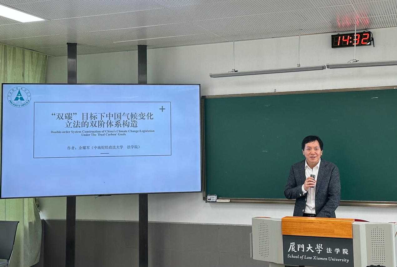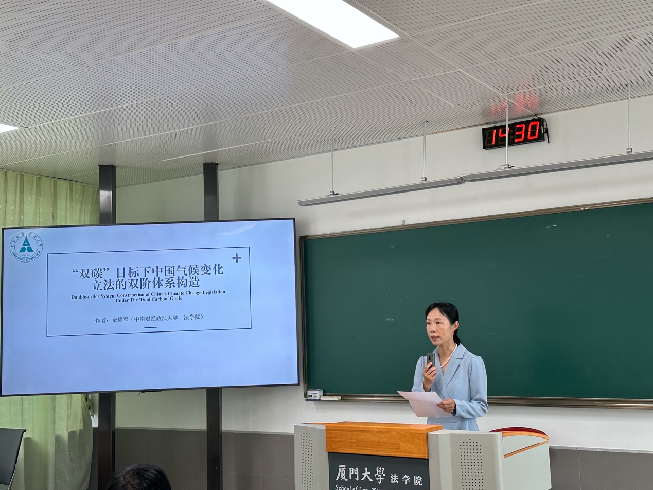 2024年11月18日下午,厦门大学法学院第七十三期信实“青椒会”学术论坛——“气候变化立法的双阶体系构造”在法学院A201教室顺利举办。本期论坛由中南财经政法大学法学院、双碳法治与经济研究院余耀军教授作为主讲人,厦门大学法学院副院长朱晓勤教授主持,中南财经政法大学法学院副院长张宝教授、厦门大学法学院周琛副教授担任与谈人。法学院李天相老师、燕星宇老师和几十位同学参加了本次学术讲座。