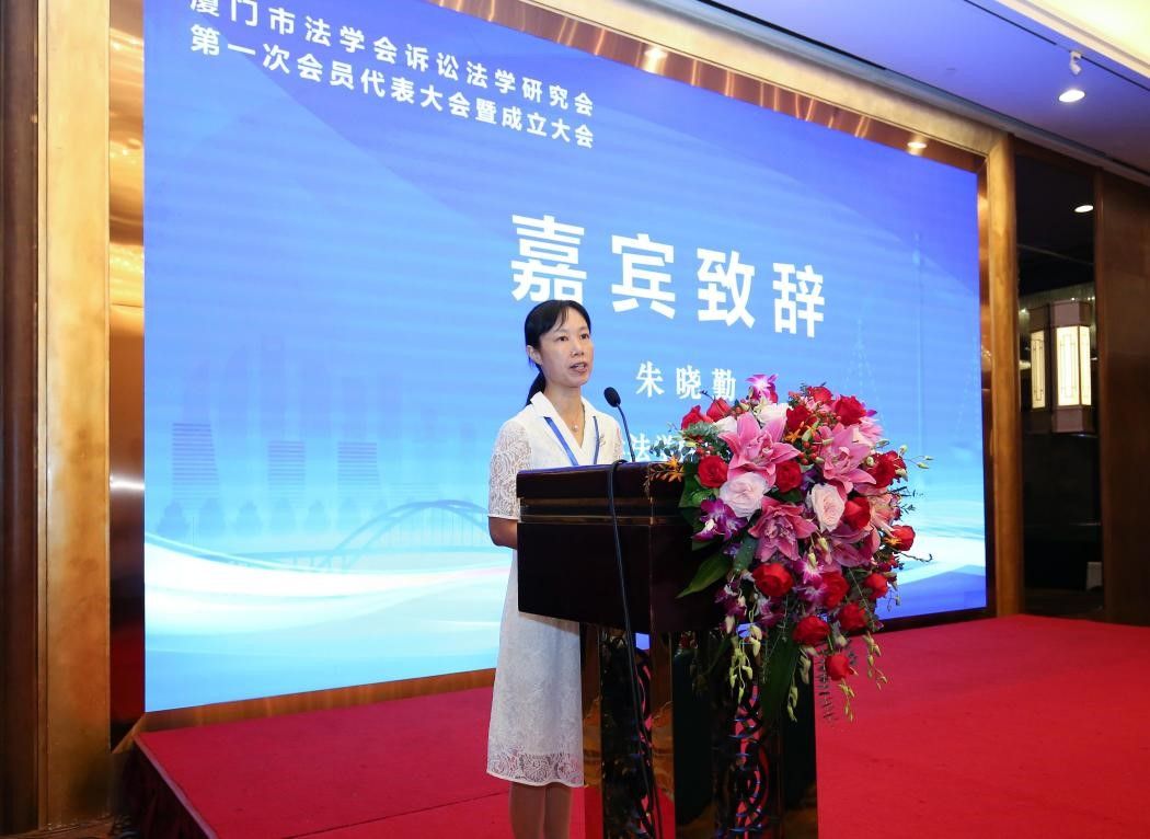 厦门市委政法委委务会成员、市法学会党组成员、专职副会长吴少鹰在致辞中指出,诉讼法学研究会的成立是我市法学研究事业中的一件大事,对进一步完善厦门市法学会研究会组织体系,进一步推动我市诉讼法学研究与实践的繁荣发展,进一步服务建设更高水平的法治厦门,特别是对于厦门贯彻落实习近平法治思想,加快推进海丝中央法务区建设,实现法治中国典范城市的目标,具有十分重要的意义。希望新成立的诉讼法学研究会要讲政治,始终确保正确方向;要讲担当、全力服务发展大局;要讲团结,广泛凝聚法治力量。