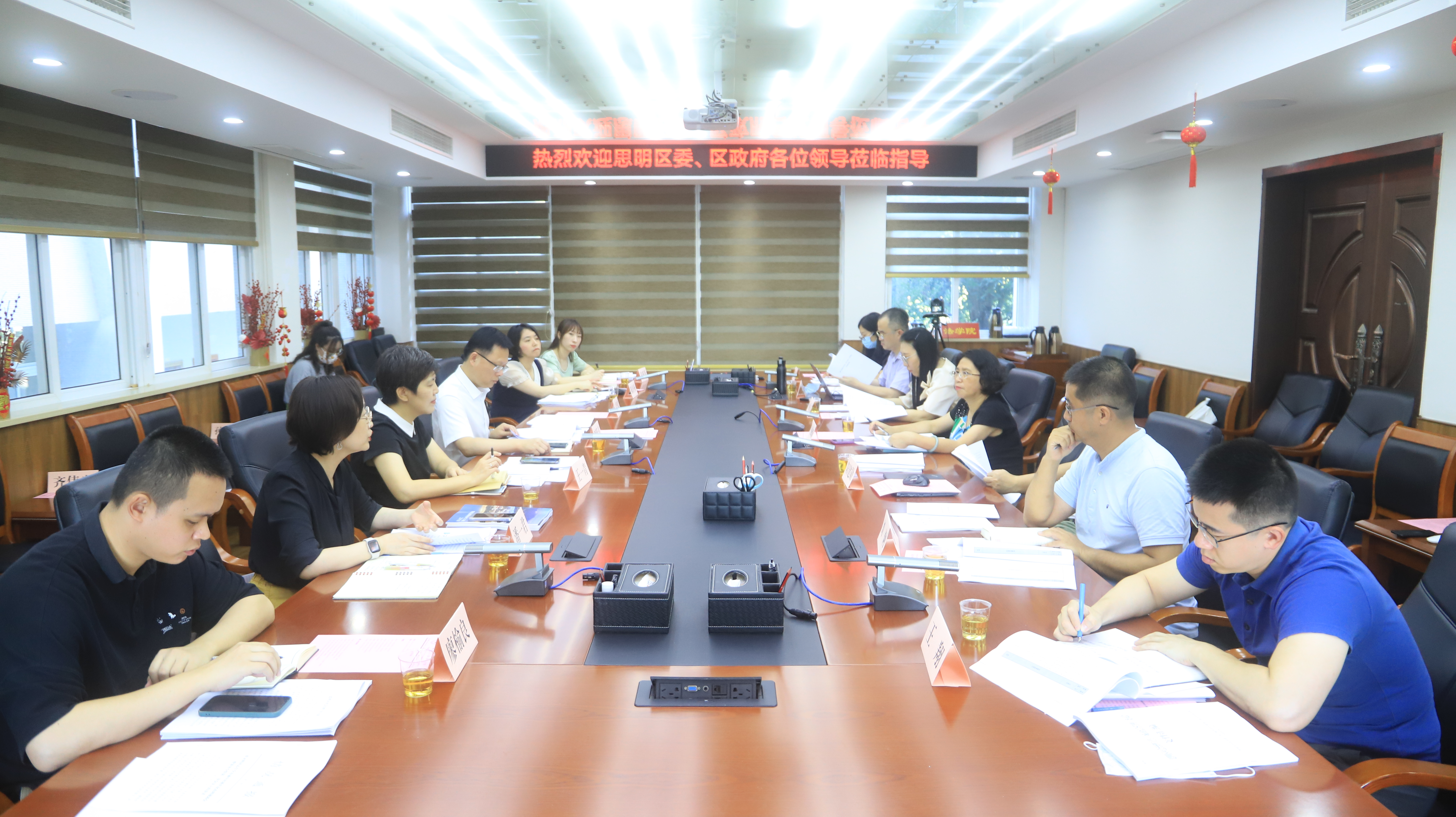 会上,思明区委政法委书记颜跃喜、副区长王华琪、滨海街道办事处主任陈舒杨、区委办副主任潘一君对思明区的市域综合治理及城中村改造等方面的工作情况与发展规划作简要介绍,法学院各位老师分别从各自研究领域角度对此提出意见建议。随后双方就此主题展开研讨,并对接下来双方计划开展的科研课题合作进行交流。