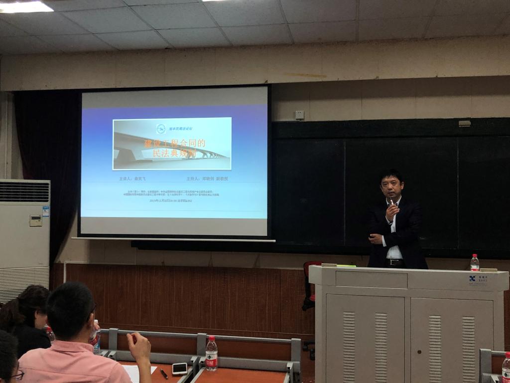 2019年11月22日晚18:30,由厦门大学法学院与福建旭丰律师事务所联合主办的旭丰民商法论坛在法学院A302教室举行。本次讲座的主题是“建设工程合同的民法典规制”,主讲人是在建设工程法律实务领域颇有影响和建树的曲笑飞律师。
