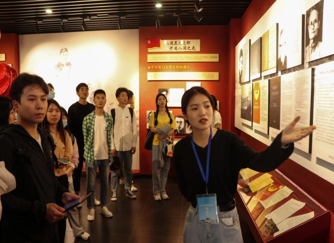 随后,支部党员和入党积极分子们来到革命史馆,通过参观“八闽革命摇篮”、“坚持红旗不倒”、“抗日救亡基地”、“东南民主堡垒”等四个单元,学习了解了1921年至1950年期间厦门大学师生反抗外来侵略、拯救民族危机的奋斗历程。