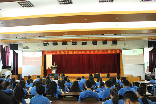 厦门大学法学院2016年优秀大学生夏令营于7月15日正式启动,学院于15日下午3点在模拟法庭盛大举行了夏令营开营仪式。法学院院长宋方青、副院长林秀芹、副院长李兰英、副院长朱炎生、党委副书记郭锦星以及学院各教研室教师代表出席了该仪式。仪式由郭锦星副书记主持。