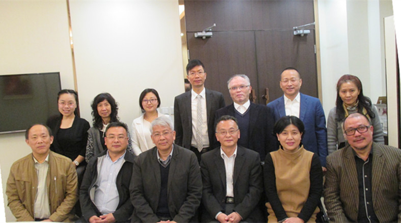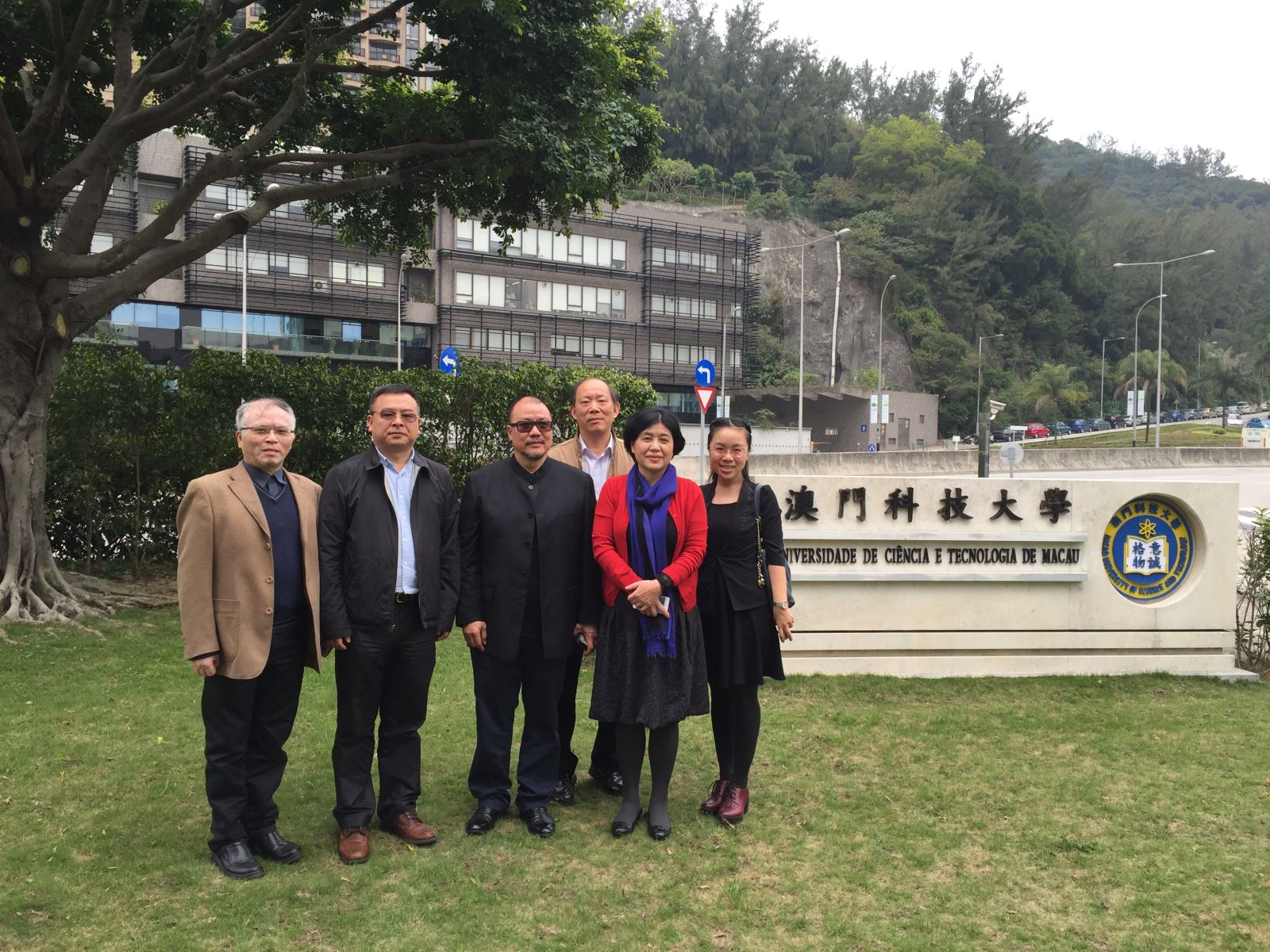 3月28日下午,参访澳门大学。左二:澳门校友会理事长谢广汉,右三:澳门大学校长助理张学森