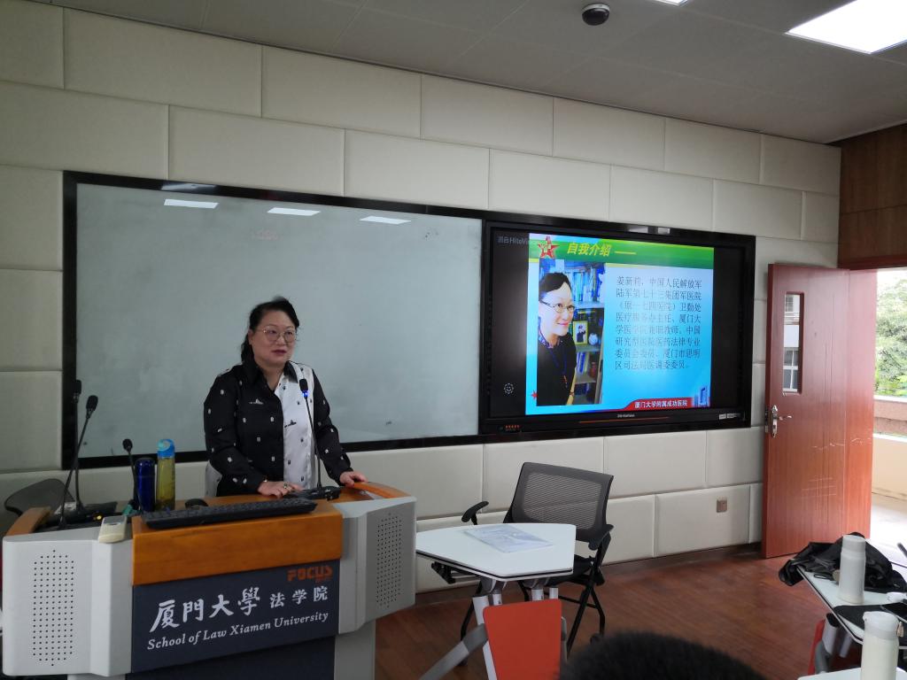 2020年10月21号上午8点,中国人民解放军陆军第七十三集团军医院(原第一七四医院)卫勤处医疗服务办主任、厦门大学医学院兼职教师姜新莉主任受厦门大学法学院张榕教授邀请,在法学院C521举行了有关医疗纠纷典型案例评析的主题讲座。