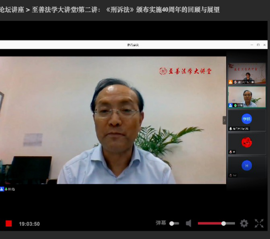 2020年6月11日晚,厦门大学“至善法学大讲堂”第二讲——“《刑事诉讼法》颁布实施40周年的回顾与展望”通过网络平台顺利举办,此次讲座由我国著名刑事诉讼法学专家、华东政法大学校长,中国法学会学术委员会委员,中国刑事诉讼法学研究会副会长叶青教授主讲,由厦门大学法学院院长宋方青教授主持。