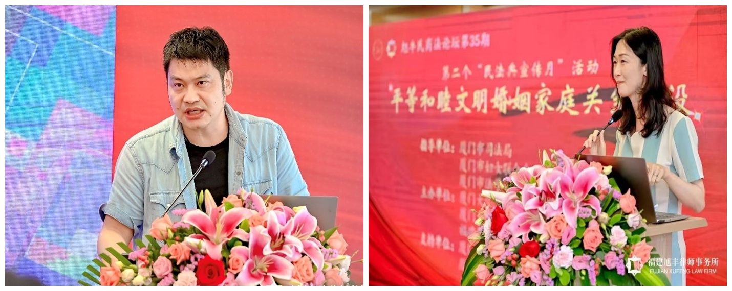 厦门大学法学院副教授、《厦大法律评论》常务副主编魏磊杰博士报告分享了《民行交叉视野下父母离婚后的子女姓名变更问题再思考》。他以“夫妻在家庭中地位平等原则”及典型案例引出主题并结合相关复函、批复对典型案例进行深度解析。通过常态案例总结法院的倾向性立场,同时通过非常态案例进行既有规定之反思及现实作法之改进。在福建旭丰律师事务所李丽芳律师的主持下,魏磊杰与福建旭丰律师事务所王鹭杰律师就父母离婚后的子女姓名变更问题展开了不同角度的探讨。