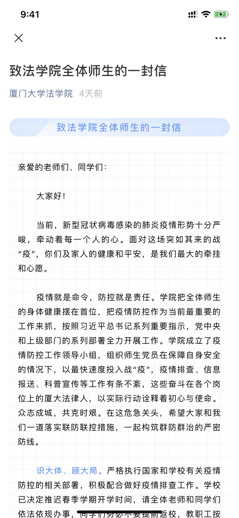 图16 致法学院全体师生的一封信