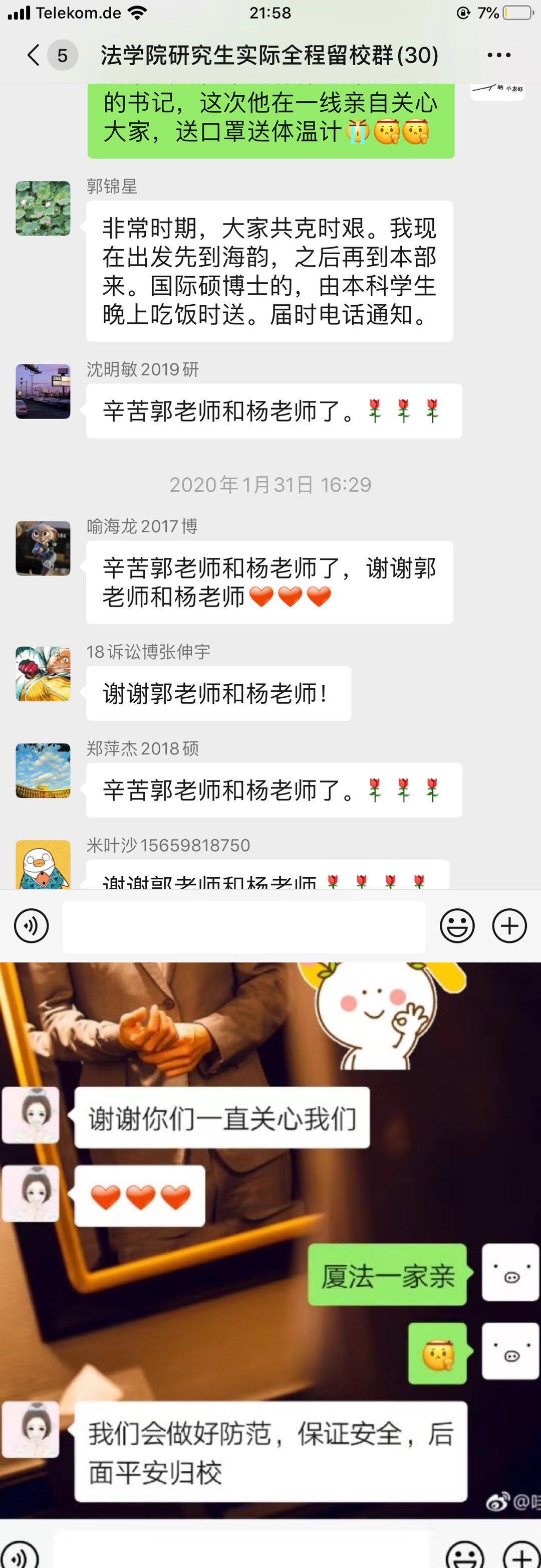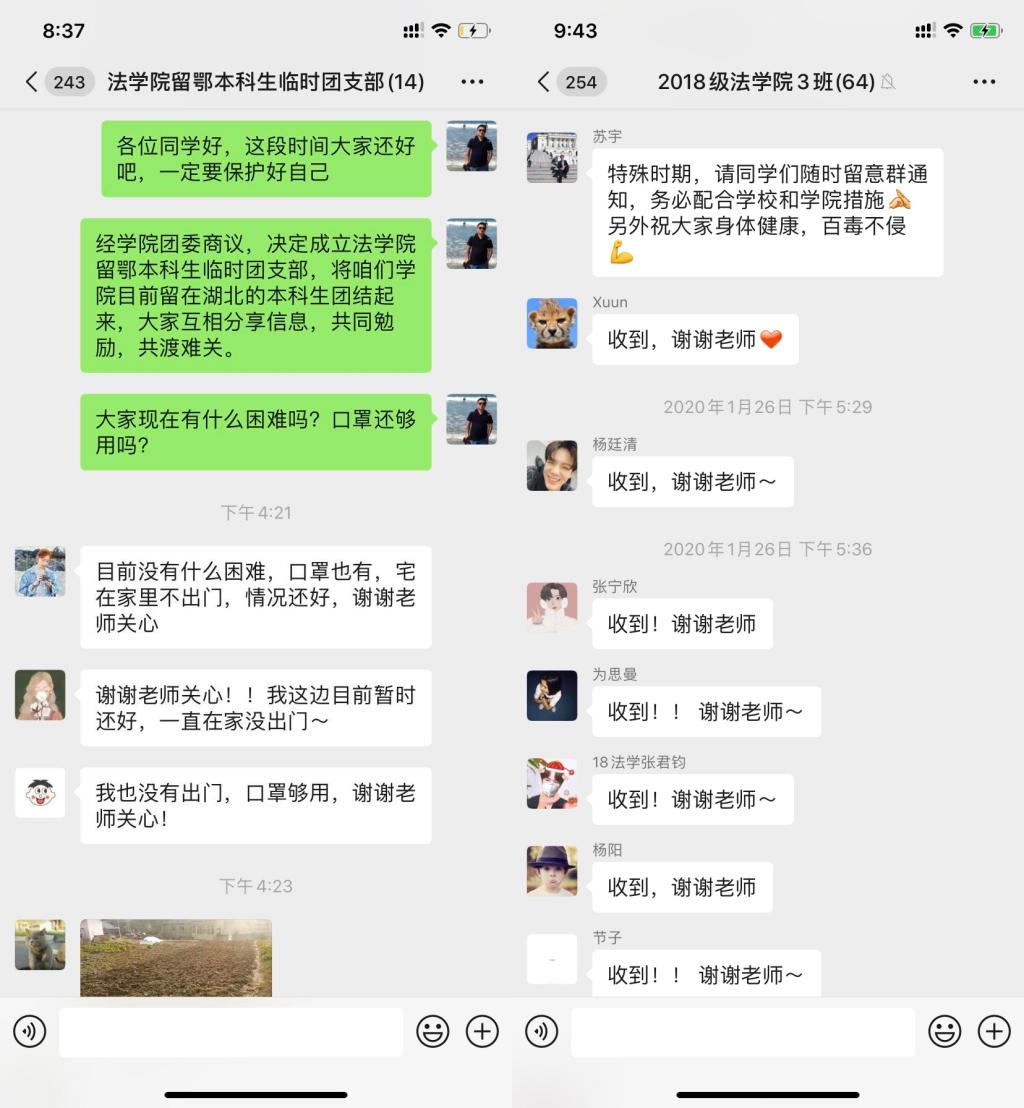 图10 在湖北的同学感谢学院的关心