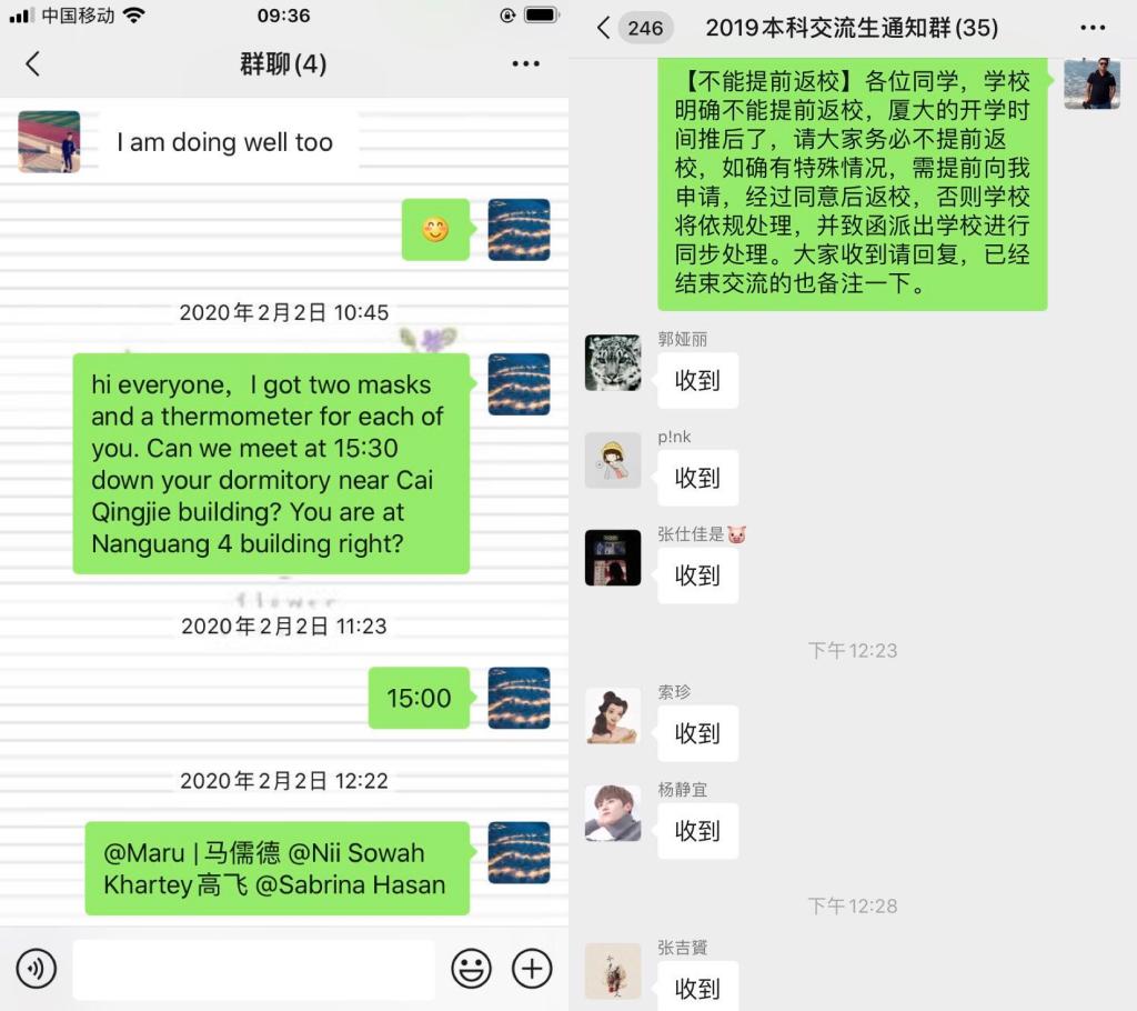 图15 南海研究院为国际生发放物资;做好对交流生的通知,工作不留死角