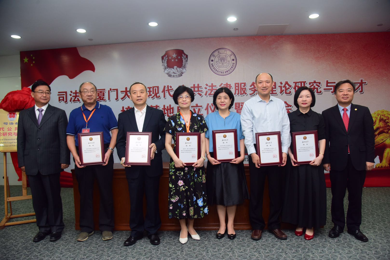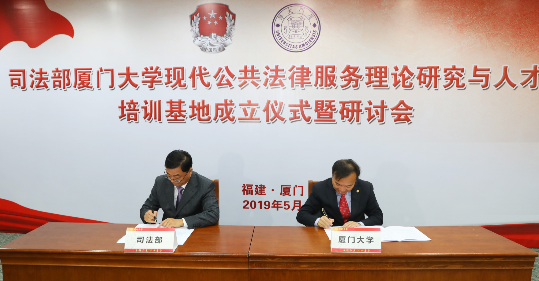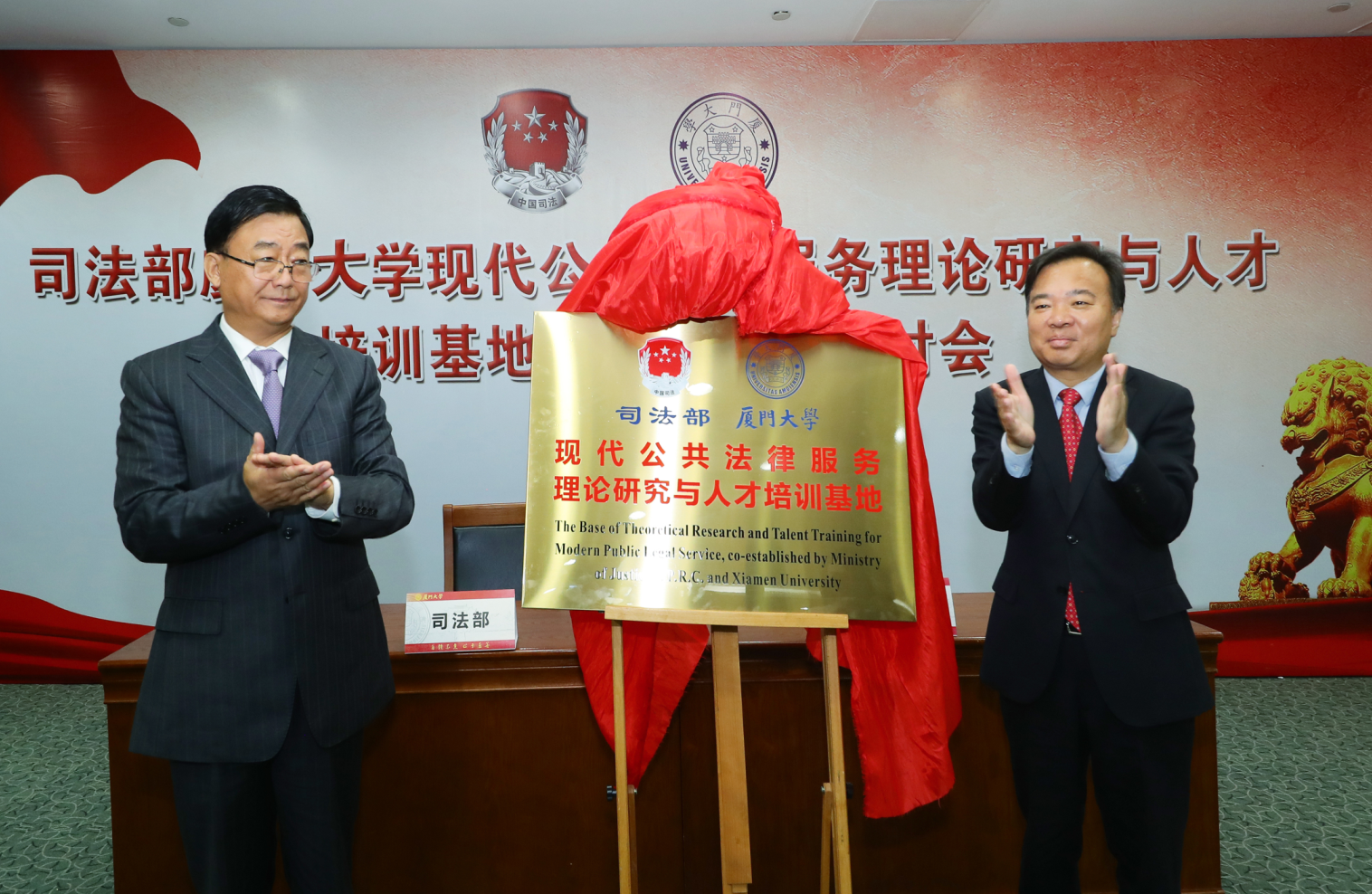 5月20日上午,“司法部厦门大学现代公共法律服务理论研究与人才培训基地”成立仪式在科学艺术中心7号会议室召开。司法部副部长刘振宇、校党委书记张彦代表双方签订《司法部—厦门大学关于共同组建“现代公共法律服务理论研究与人才培训基地”合作框架协议》,共同为“现代公共法律服务理论研究与人才培训基地”揭牌,并向基地总顾问、主任、执行主任及专家咨询委员会委员代表颁发聘书。副校长杨斌主持仪式。