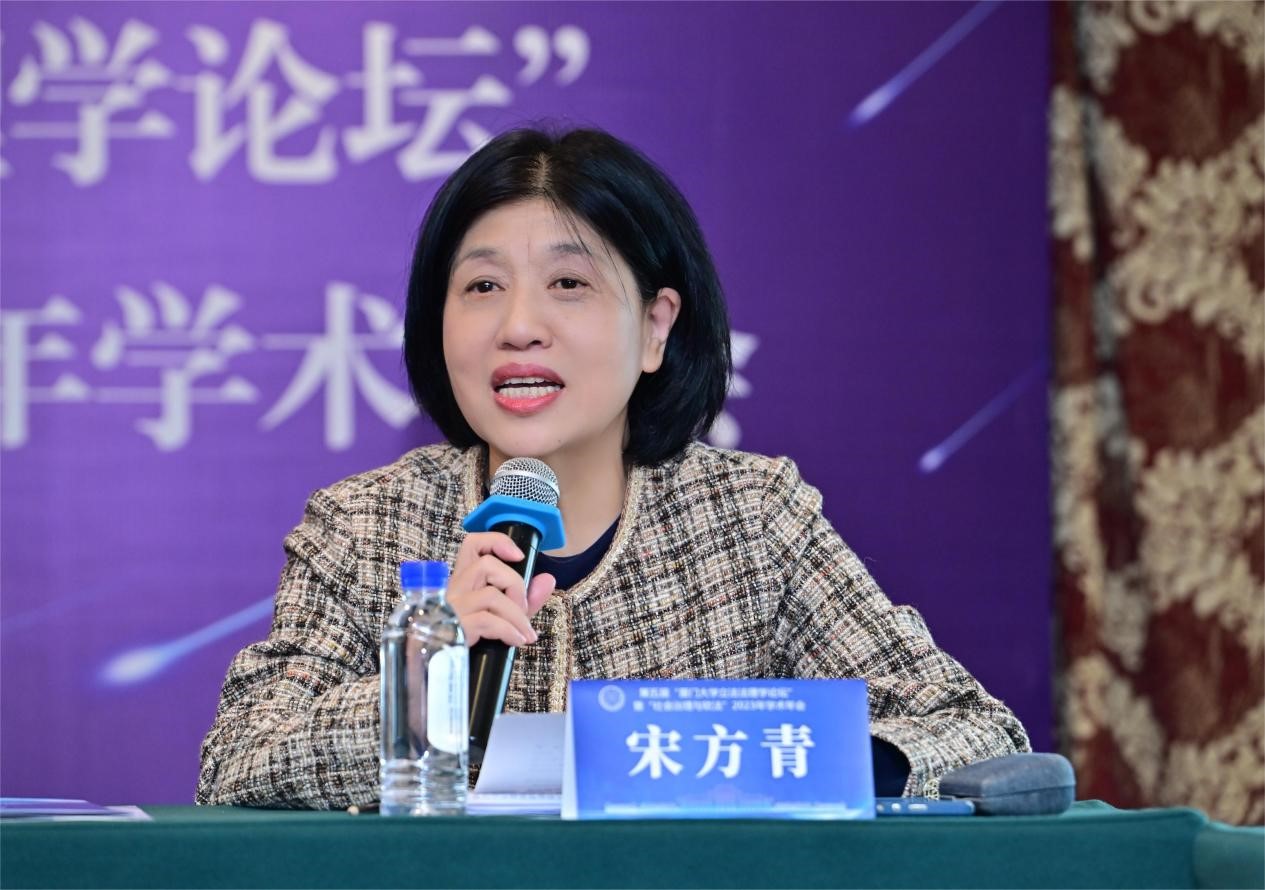 厦门大学法学院院长、厦门大学立法研究中心主任、中国法学会立法学研究会副会长宋方青教授发言的主题是《法理之于立法的应有面向及要义》。她指出,探讨法理之于立法的应有面向及要义,具有重要的现实价值。法理具有激发美德和智慧的意义。法理在立法实践中发挥着论证、解释等功能,体现于立法目的、原则和条文之中,并在此过程中保障立法的德性。作为一种的德性,法理之于立法的面向主要体现在立法者的德性、规范的德性和受众的德性三个方面。