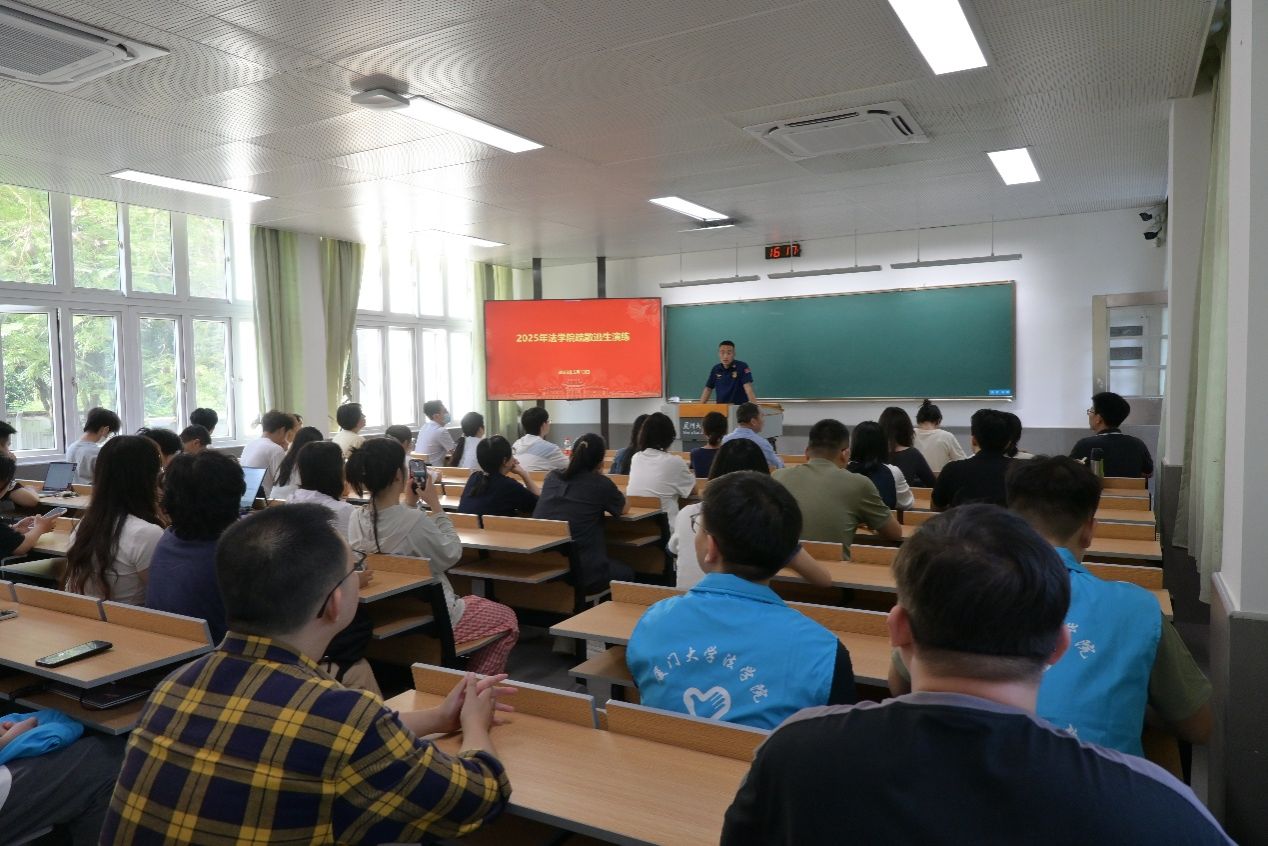 演练结束后,厦港消防站岳威班长重点结合法学院建筑结构,讲解“黄金逃生三分钟原则”,提醒在逃生时切勿机械照搬演练路线,及时根据现场情况疏散撤离。
