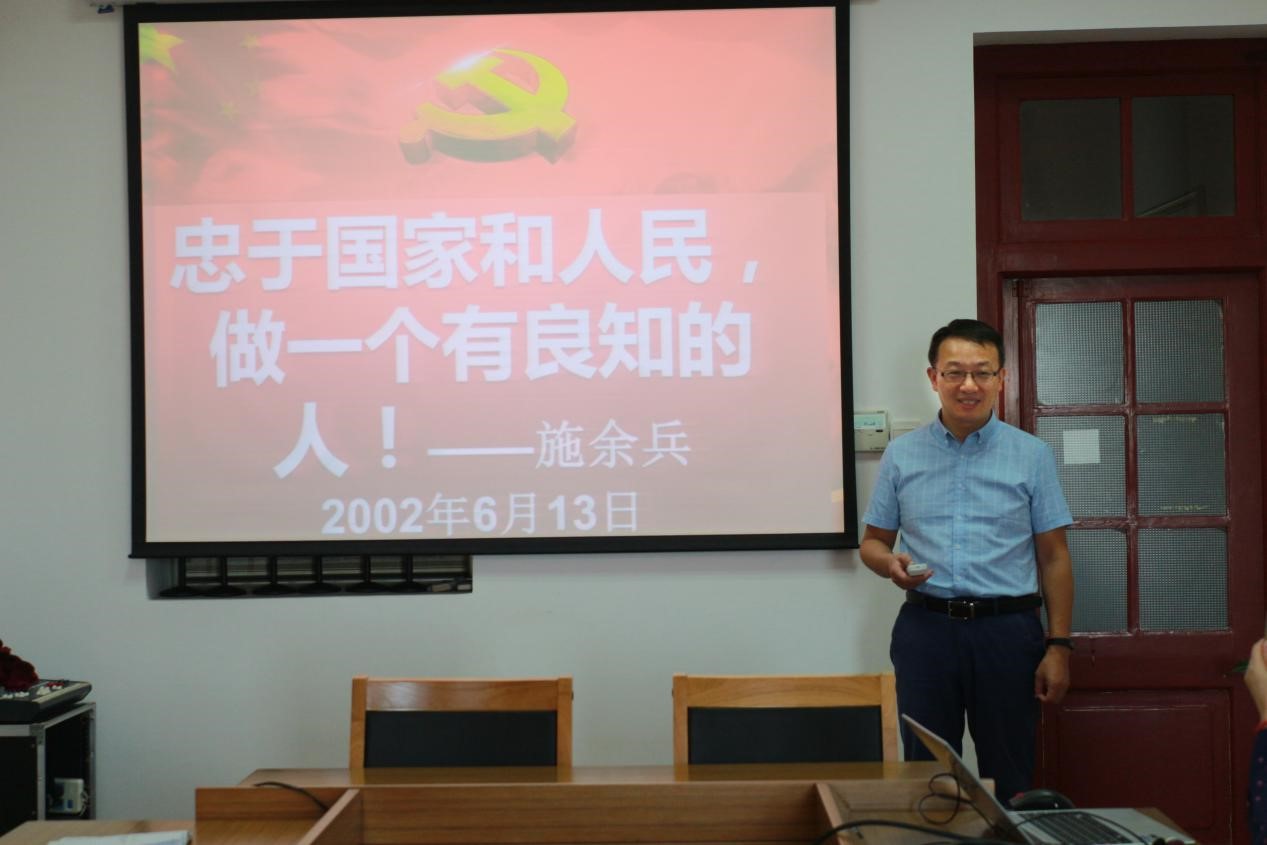 首先为大家分享的是南海院教工党支部施余兵书记。他的入党初衷是“忠于国家和人民,做一个有良知的人”。施余兵说,忠于国家和人民,始终是他不可动摇的理想信念;而对良知的坚守,则是他做人做事的底线。共产党,这一伟大的政党,将中华民族从苦难的旧中国带到美好的新中国,将中国从积贫积弱变得自足富强,始终忠于国家和人民,令人无限敬仰。正是在这种敬仰的促使下,2002年6月他成为了一名光荣的共产党员。