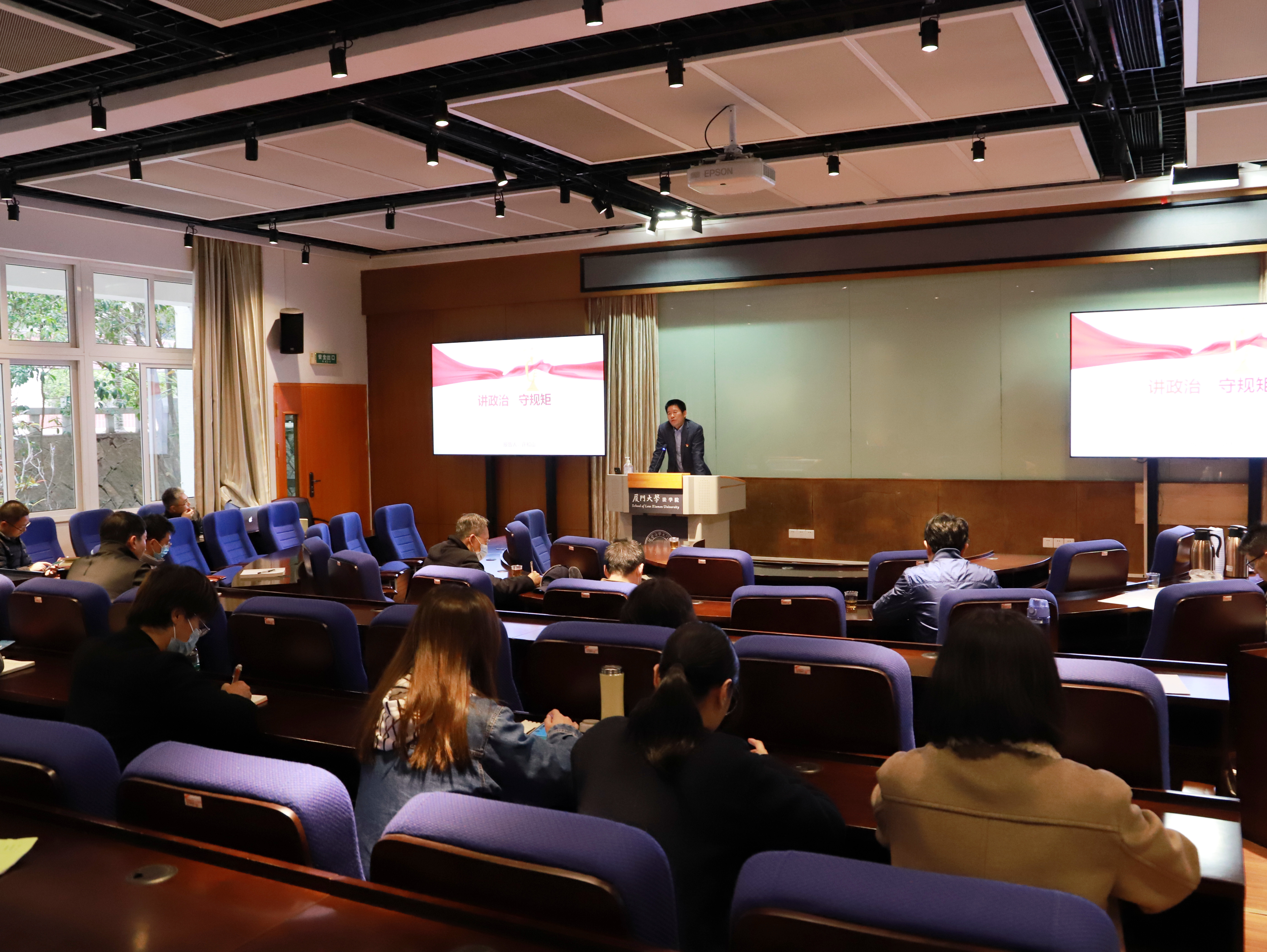 12月23日下午,法学院党务工作者履职能力提升暨第三期行政人员素质能力提升培训班在法学院B138正式开班。党委书记许和山以《讲政治 守规矩》为题,作本次培训班第一次专题报告。法学院新任教工党支部书记、副书记、支委及全体行政人员参加本次开班仪式并聆听报告。