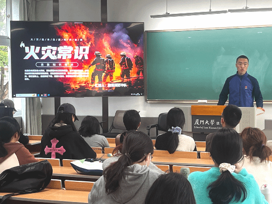 首先,厦门市消防救援支队思明区大队厦港消防救援站班长岳威、周文凯向参与的师生员工讲授防火、灭火与逃生知识,并分享火场疏散逃生技巧以及灭火器使用方法,带来一堂沉浸式消防安全“必修课”。