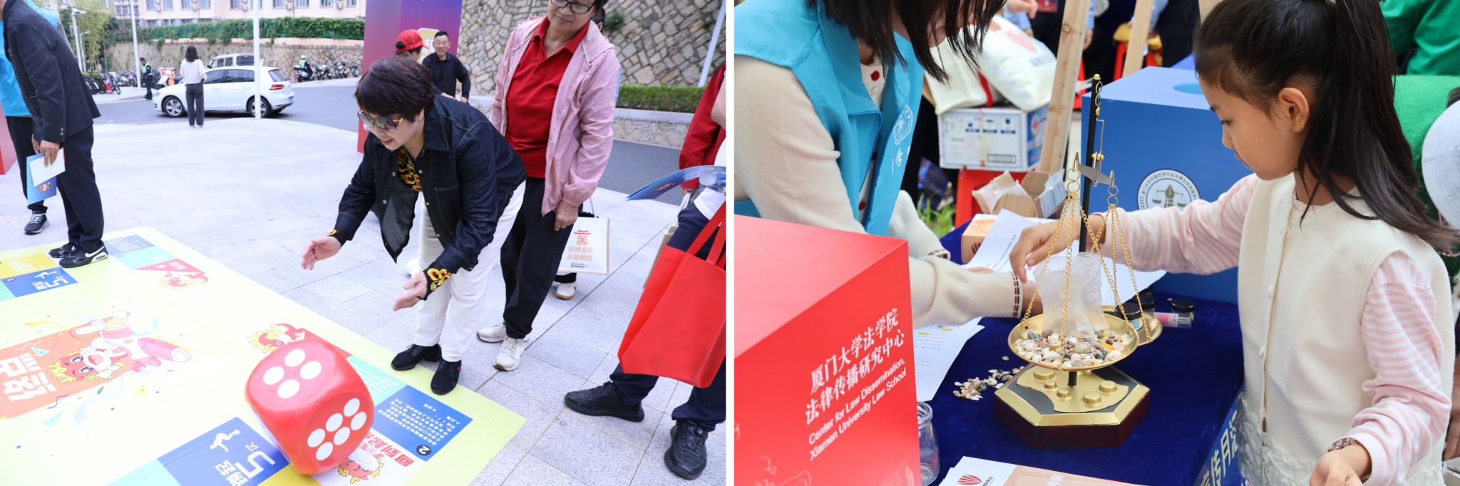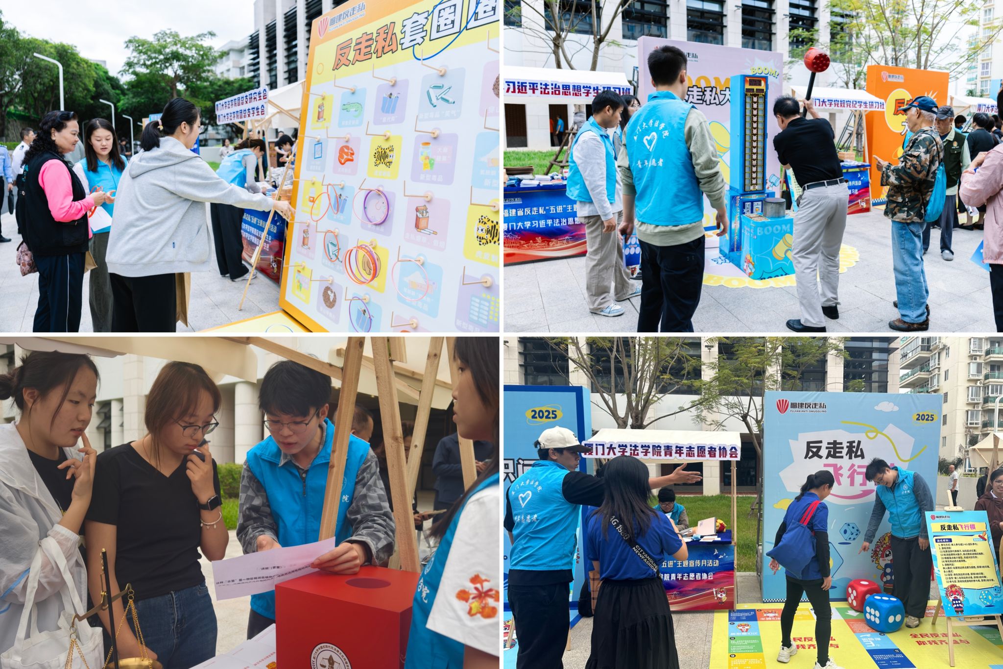 厦门大学党规党纪学生研习社组织的“反走私大转盘”同样人气高涨,“引导互动的过程中,我不仅见证了大家对反走私知识的好奇与关注,更见证了各环节工作人员间的默契配合。”社团成员蒋清玲兴奋地说。反走私套圈圈、飞行棋等趣味项目也同步开展,让普法宣传“玩”出新知。