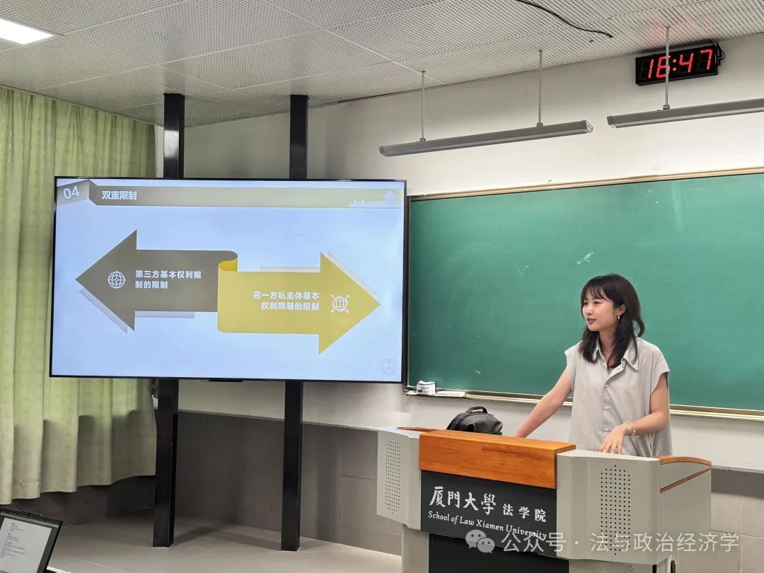讲座现场的厦门大学法学院宪法与行政法方向硕士研究生张昆莹针对公法与私法的界限提出了自己的看法。