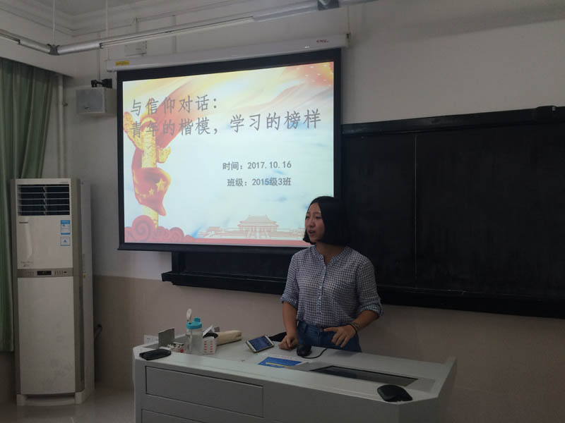 为在青年学生和各团学组织中掀起学习《习近平的七年知青岁月》的热潮,引导我院青年学生学思践悟习近平总书记青年时期的成长故事,更加全面、历史地认识党的十八届六中全会确立习近平同志党中央的核心、全党的核心地位的重大意义,以奋发向上、团结一心的精神状态迎接党的十九大胜利召开,2017年10月16日,厦门大学法学院本科生根据学院安排,以团支部为单位,举行了“与信仰对话:青年的楷模,学习的榜样”团课活动,活动由各班团支书和班长主持。