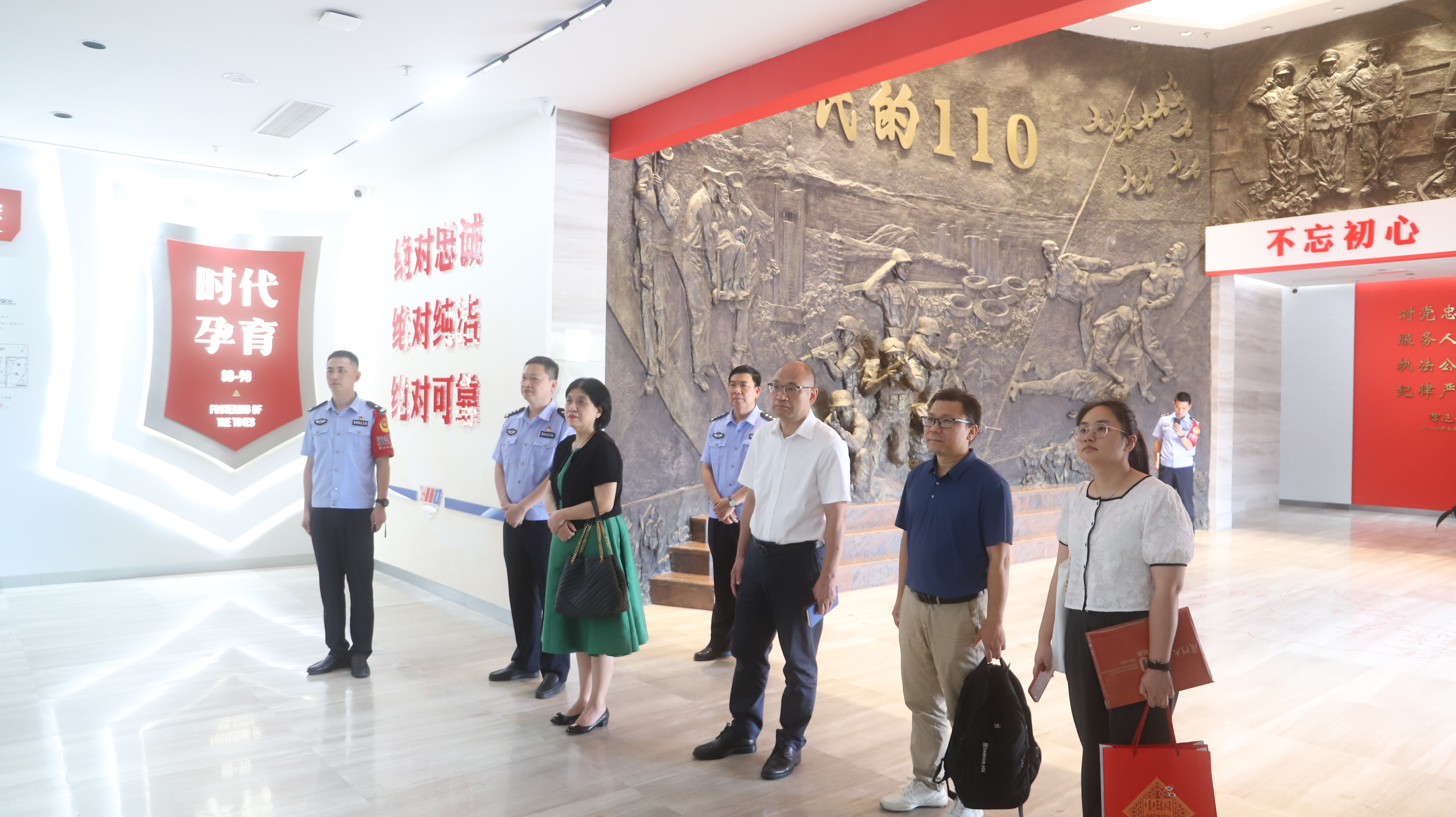 宋方青院长一行首先进入漳州110事迹展览馆参观,漳州市公安局巡特警支队直属大队大队长洪森进行讲解介绍。展览馆内设时代孕育、时代先锋、守护漳州、时代答卷和时代荣誉五个展厅,集合了漳州110的历史沿革、警务成果、先进事迹、荣誉获奖等丰富内容,充分展现了“时代楷模”漳州110的优良作风与精神传承。