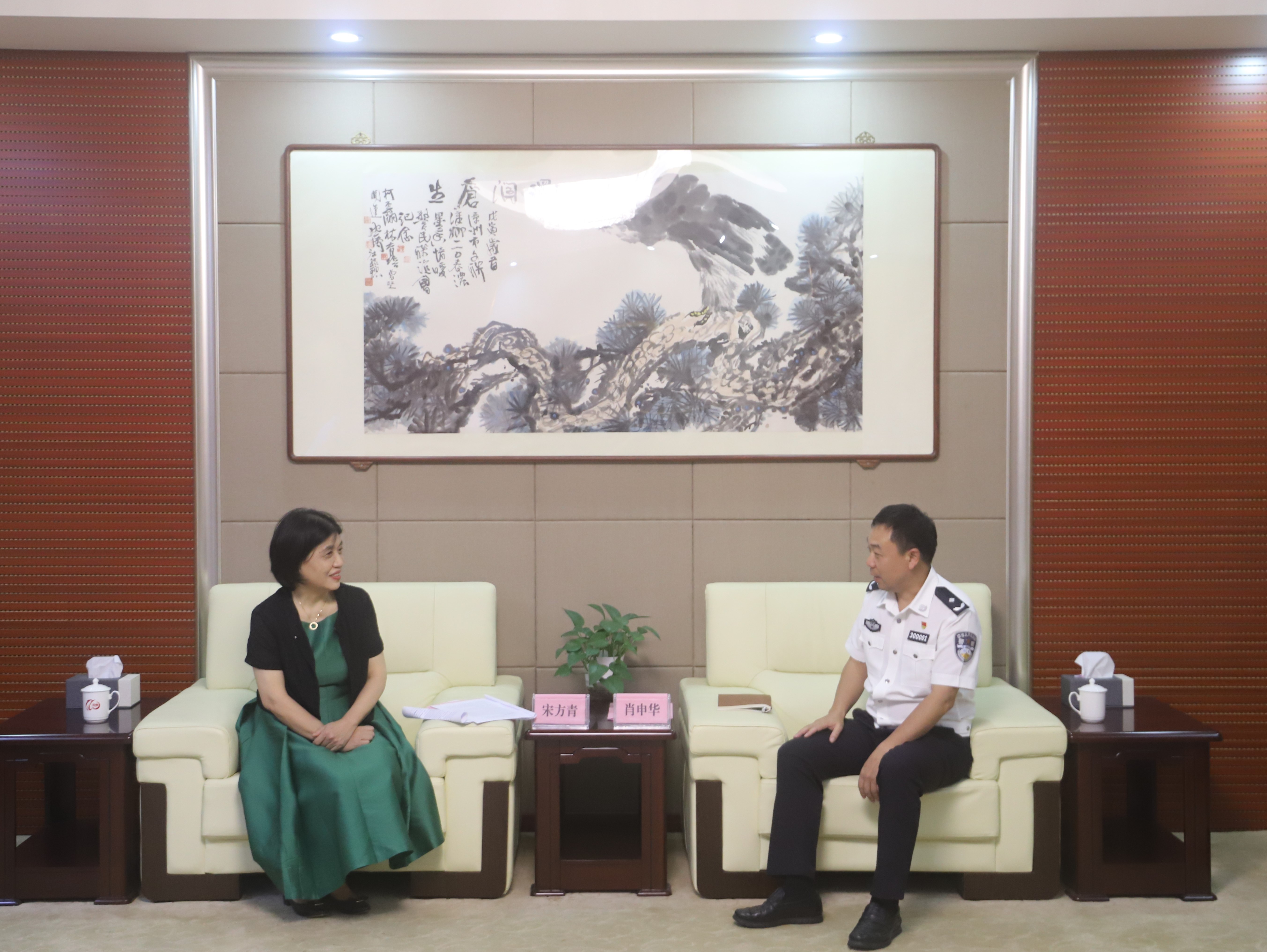 7月5日下午,法学院院长宋方青教授、郑金雄教授、王天民副教授等一行赴漳州市公安局调研。漳州市人民政府副市长、公安局长肖申华,漳州市公安局巡特警支队支队长韩志忠等领导到场座谈交流。