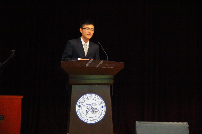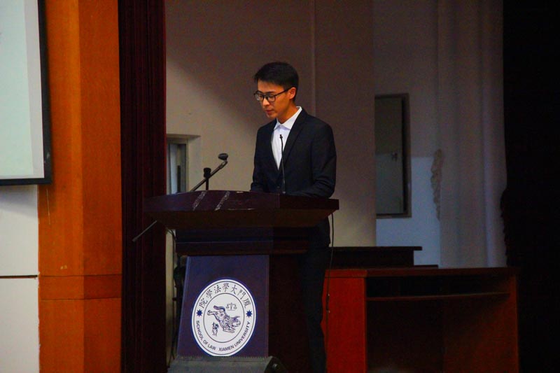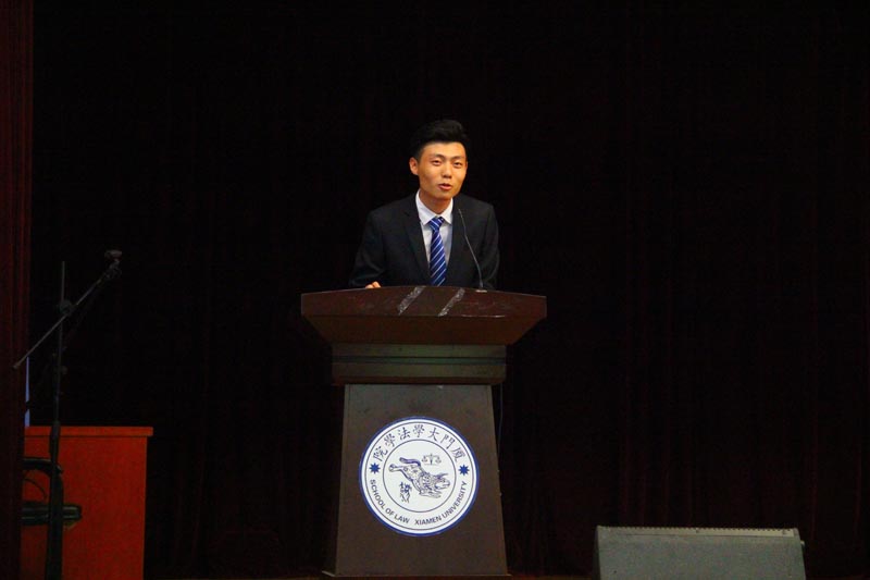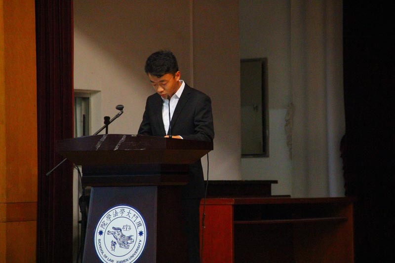 第二项议程是法学院学生委员会主席赵世豪作厦门大学法学院第三十五届学生委员会工作报告,他对学生会各部门在整整一学年的工作做了总结,强调了各部门重责任、有担当、向和睦的良好品质和工作氛围,并在最后表达了对未来学生工作再创辉煌的信心和期望。