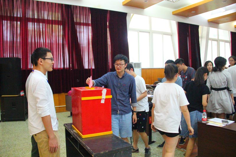 接下来便进入了第一次会议最重要的环节:投票选举。每位学生代表分别在选票上勾选了自己的赞成票和反对票,然后将其投入票箱中。